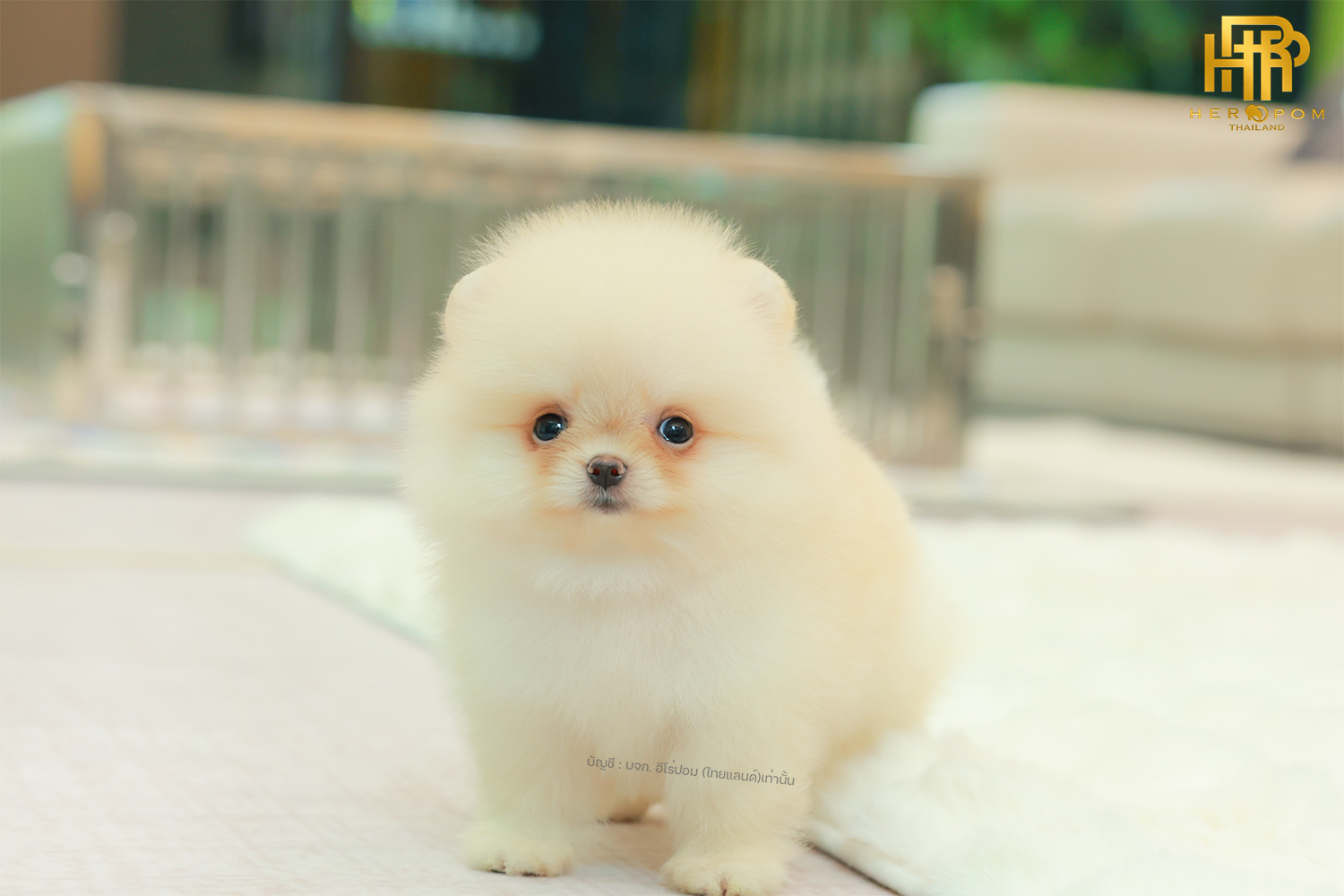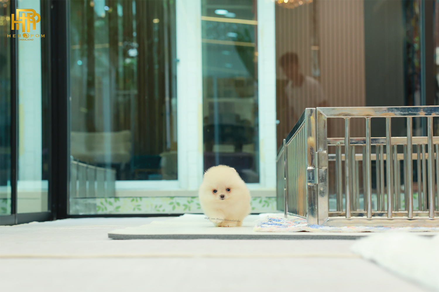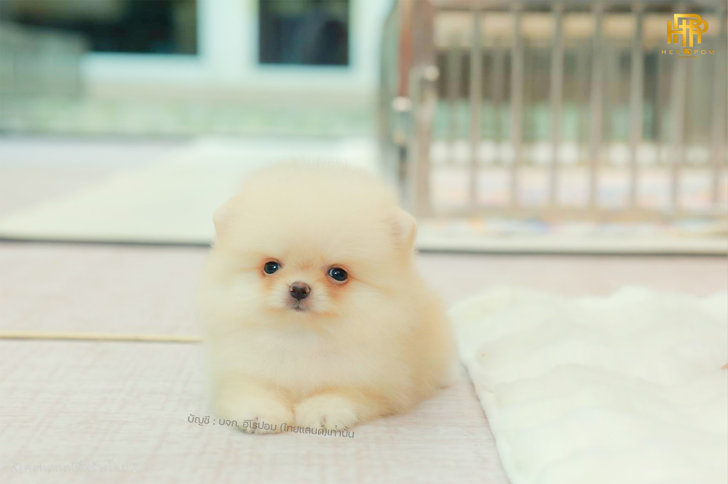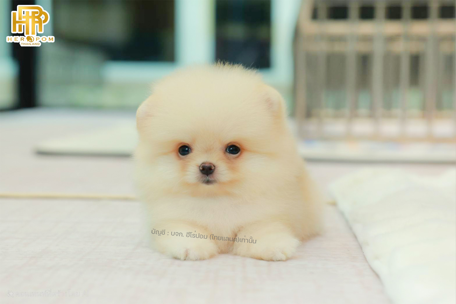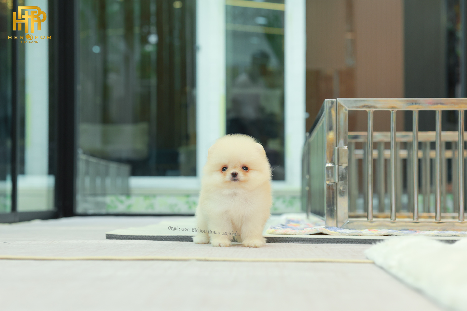 ปอมแท้ ปอมเมอเรเนียน HRM-68167 เพศชาย สีครีม อายุ 2 เดือน หน้าตาน่ารัก ขาสั้น ขนแน่นฟู ขี้เล่นมาก
