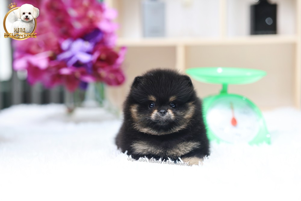 ปอมแท้ ปอมเมอเรเนียน HRF-68395 เพศหญิง สีแบล็คแทน อายุ 2 เดือน หน้าตาน่ารัก ขาสั้น ขนแน่นฟู ขี้เล่นมาก