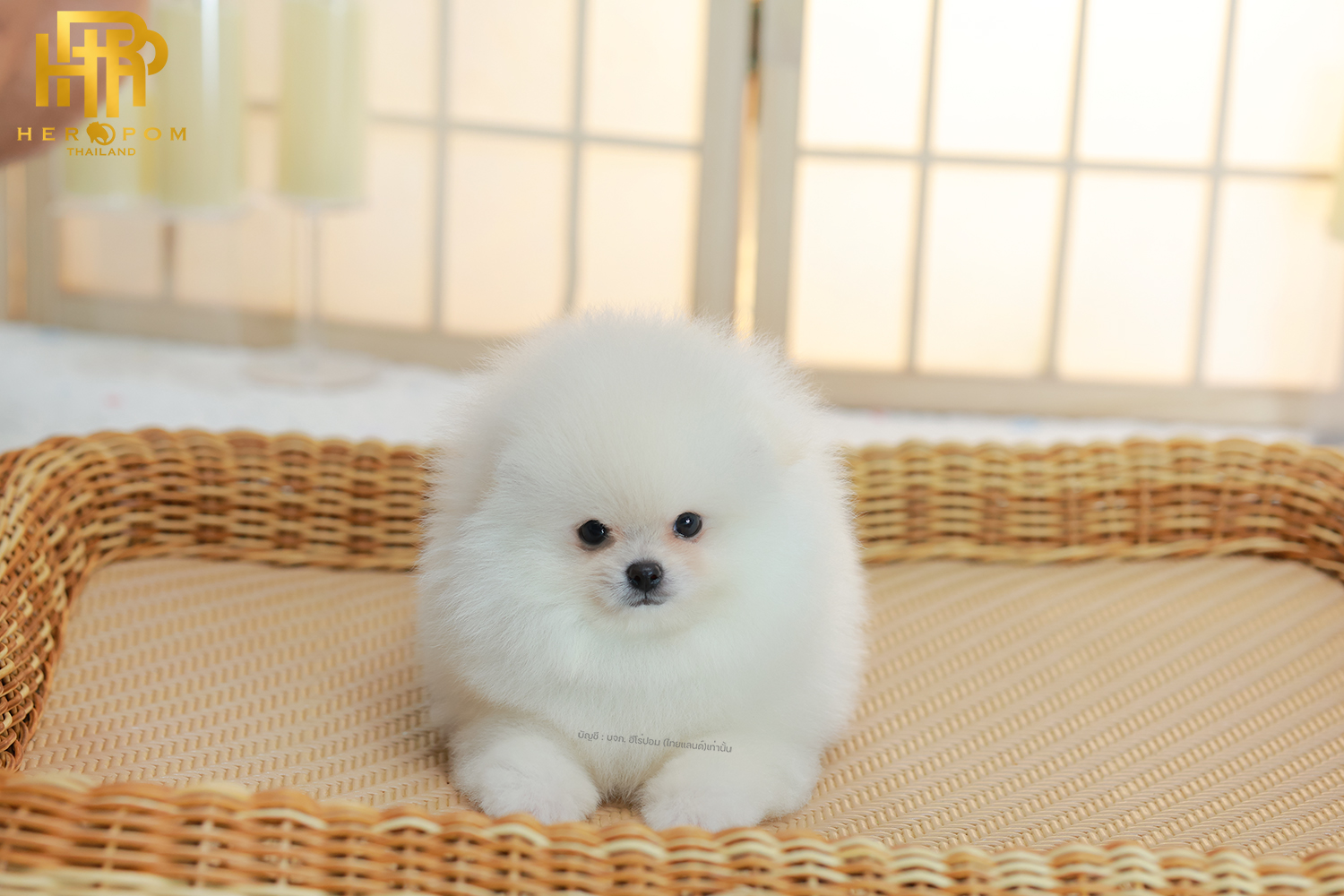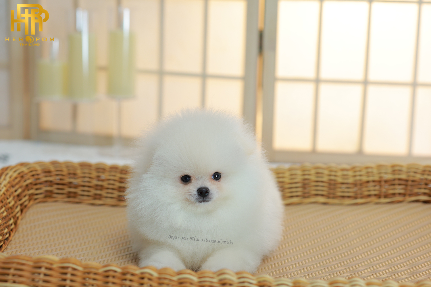 ปอมแท้ ปอมเมอเรเนียน HRM-68771 เพศชาย สีขาวครีม อายุ 2 เดือน หน้าตาน่ารัก ขาสั้น ขนแน่นฟู ขี้เล่นมาก