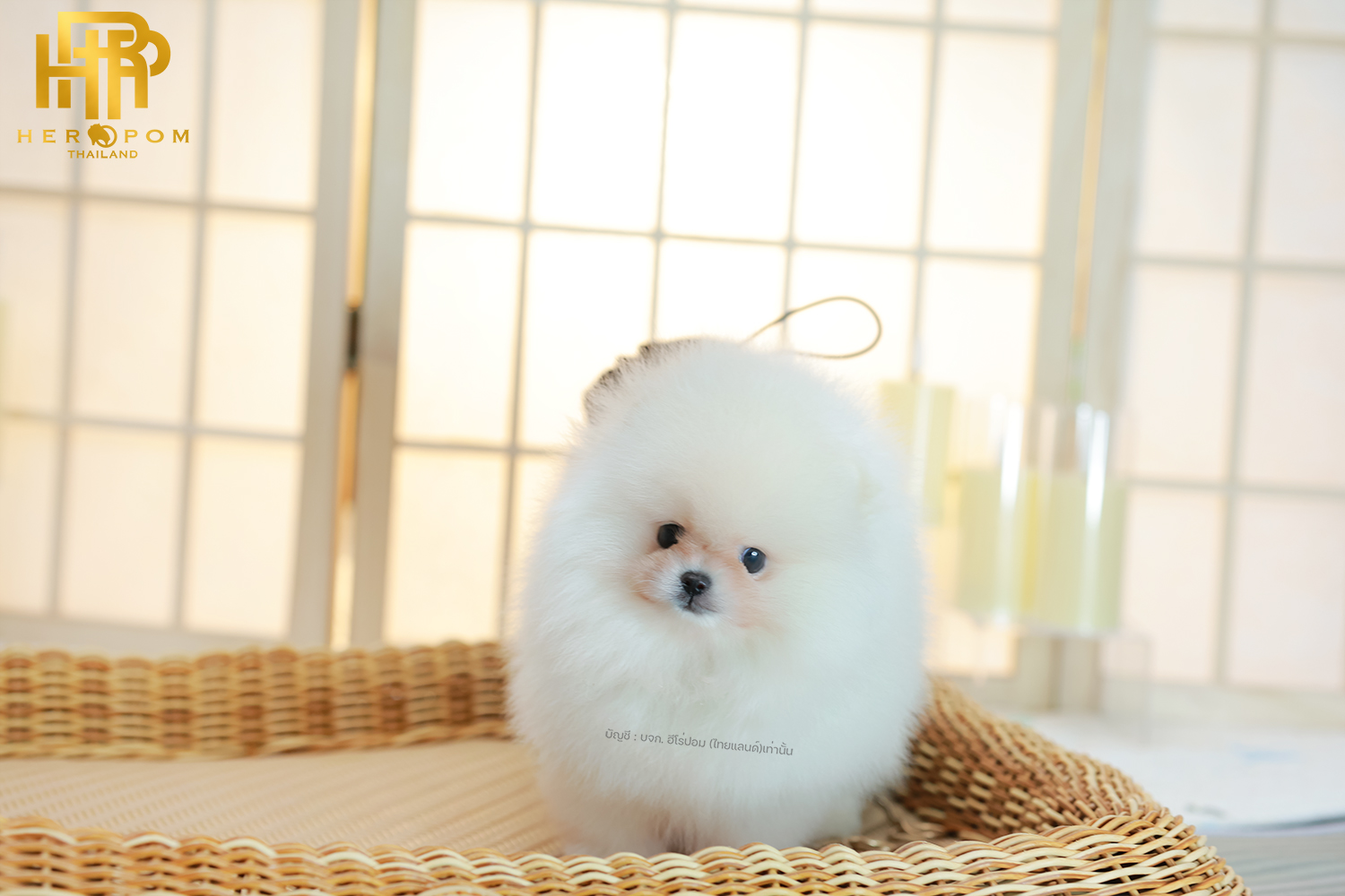 ปอมแท้ ปอมเมอเรเนียน HRM-68172 เพศชาย สีขาวครีม อายุ 2 เดือน หน้าตาน่ารัก ขาสั้น ขนแน่นฟู ขี้เล่นมาก