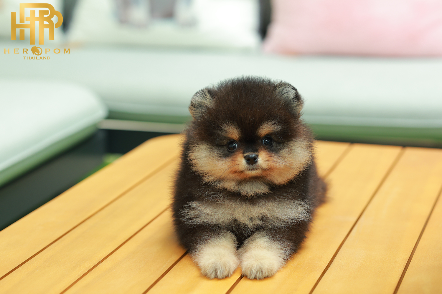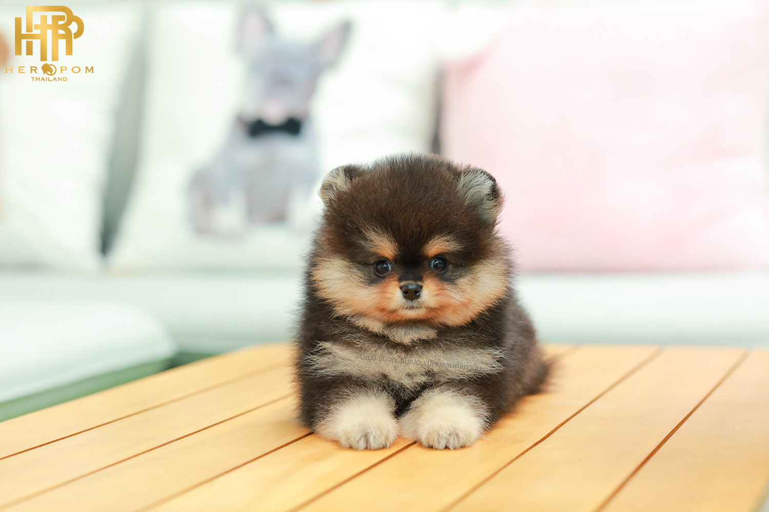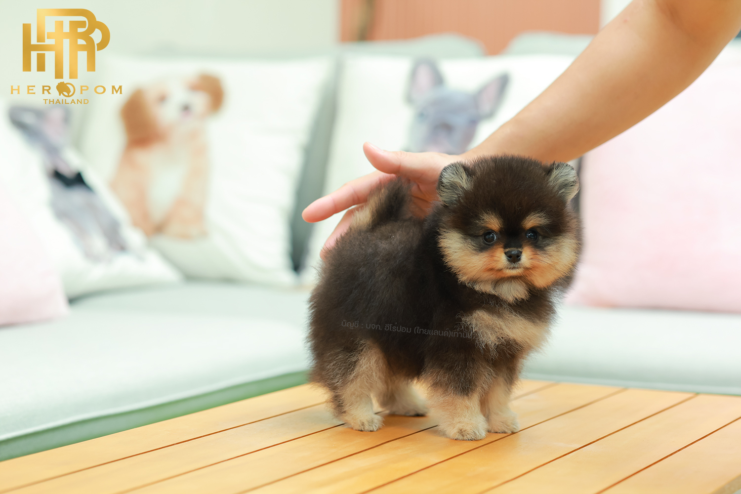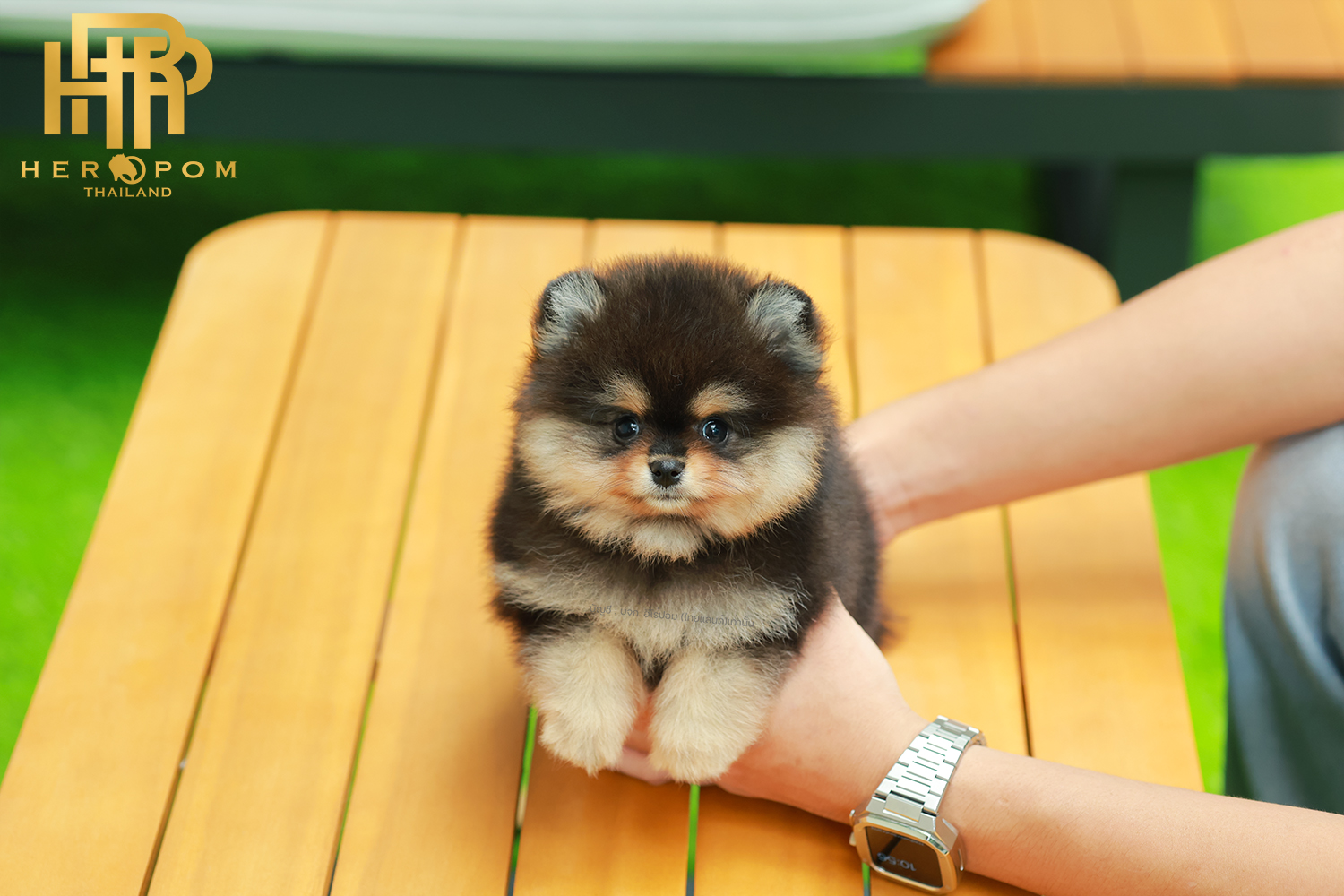 ปอมแท้ ปอมเมอเรเนียน HRM-68776 เพศชาย สีแบล็คแทน อายุ 2 เดือน หน้าตาน่ารัก ขาสั้น ขนแน่นฟู ขี้เล่นมาก