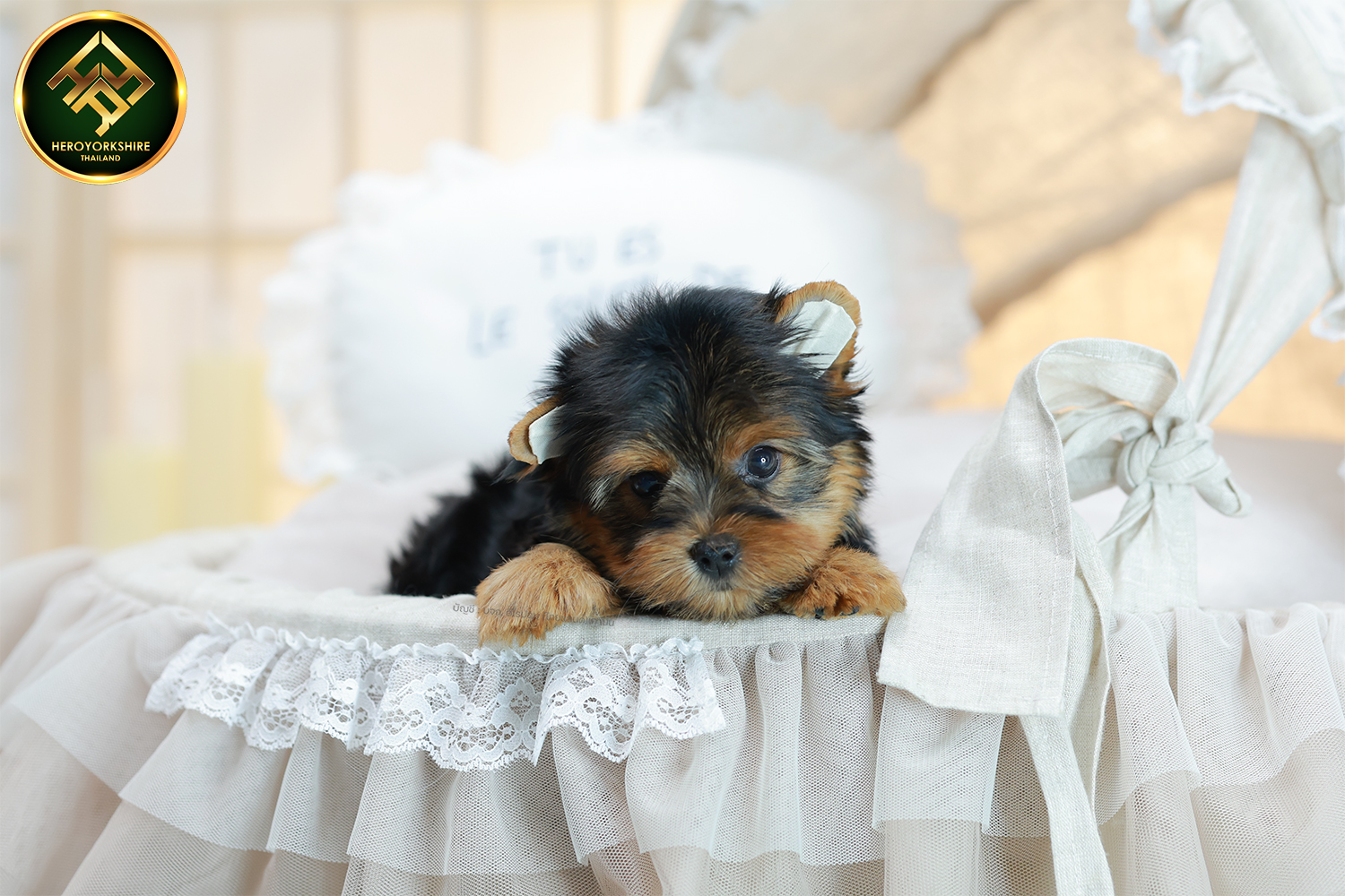 ยอร์คเชียร์ เทอร์เรีย HYF-68180 เพศหญิง สีแบล็คแทน อายุ 2 เดือน ตัวเล็ก ขาสั้น หน้าสั้น ขนแน่นฟู