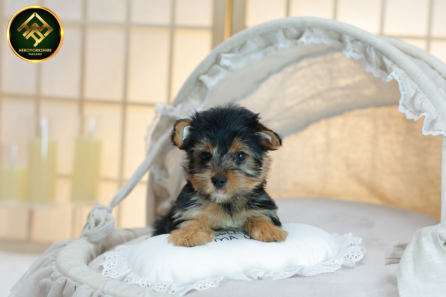 ยอร์คเชียร์ เทอร์เรีย HYF-68765 เพศหญิง สีแบล็คแทน อายุ 2 เดือน ตัวเล็ก ขาสั้น หน้าสั้น ขนแน่นฟู