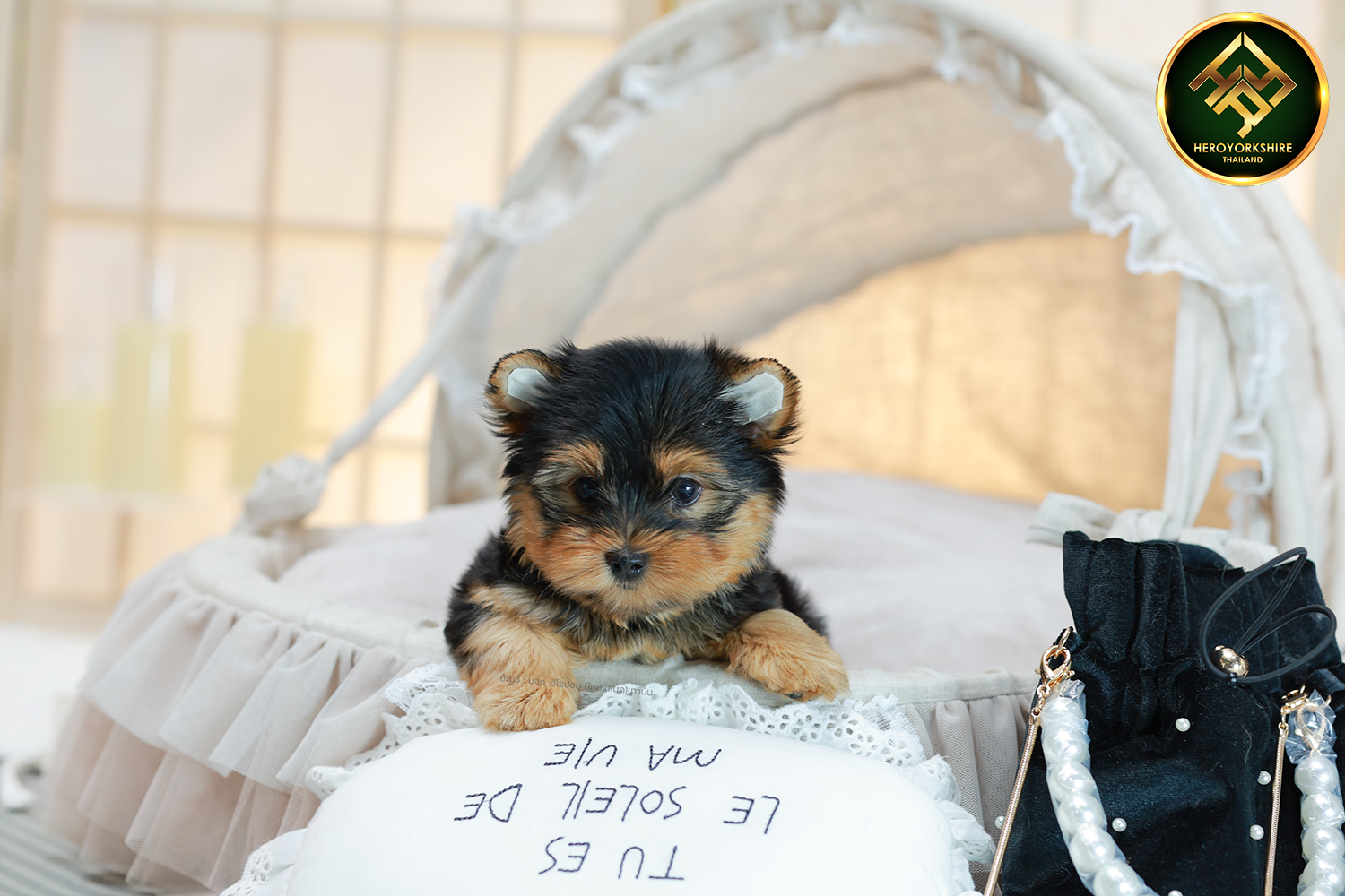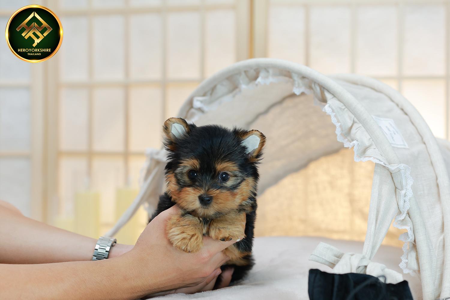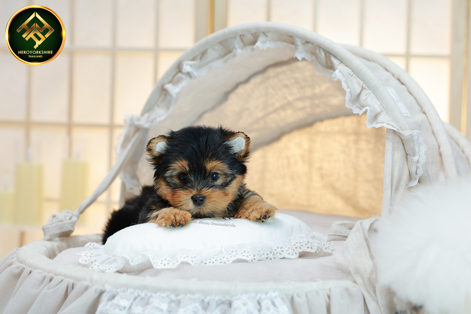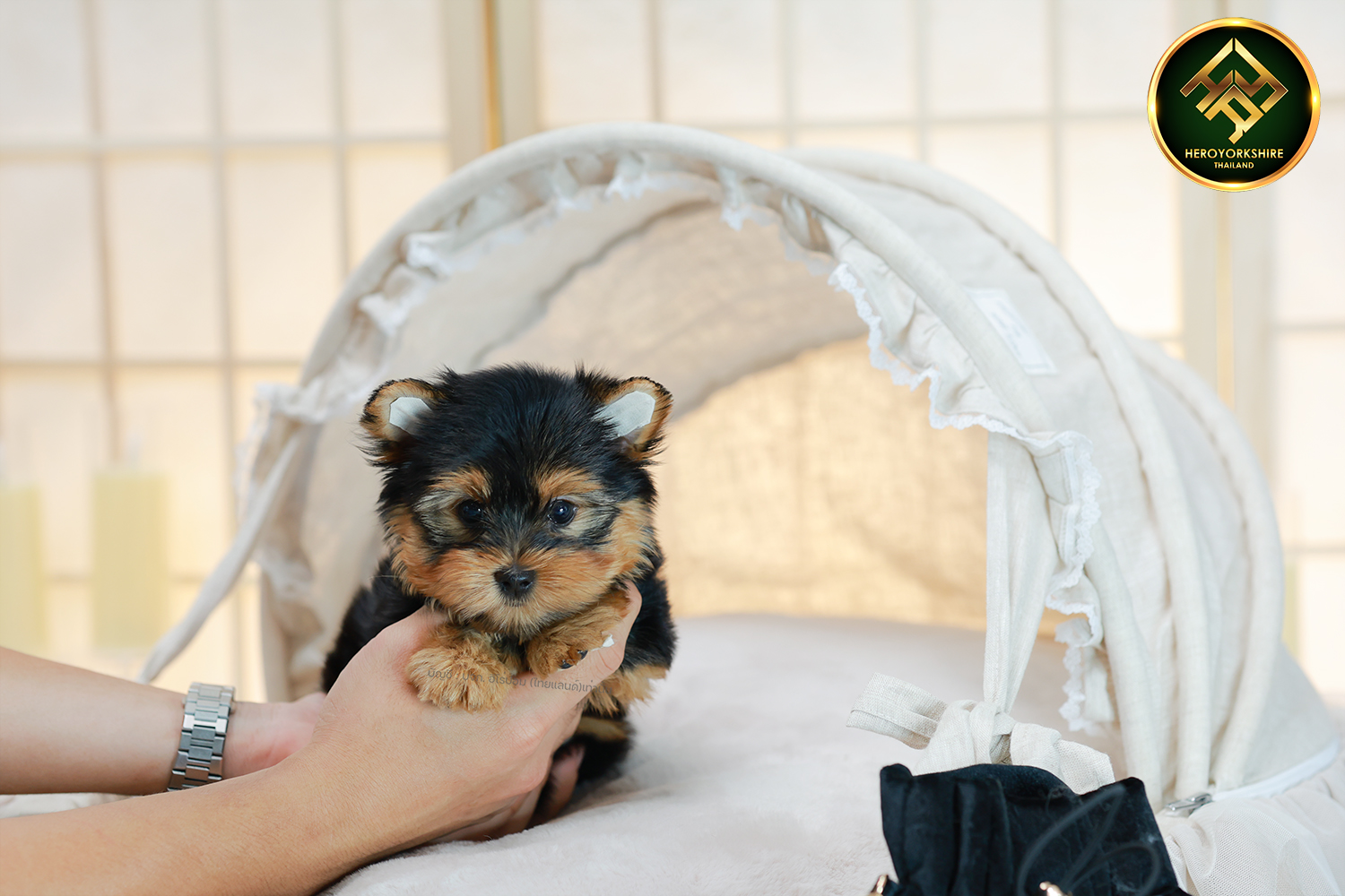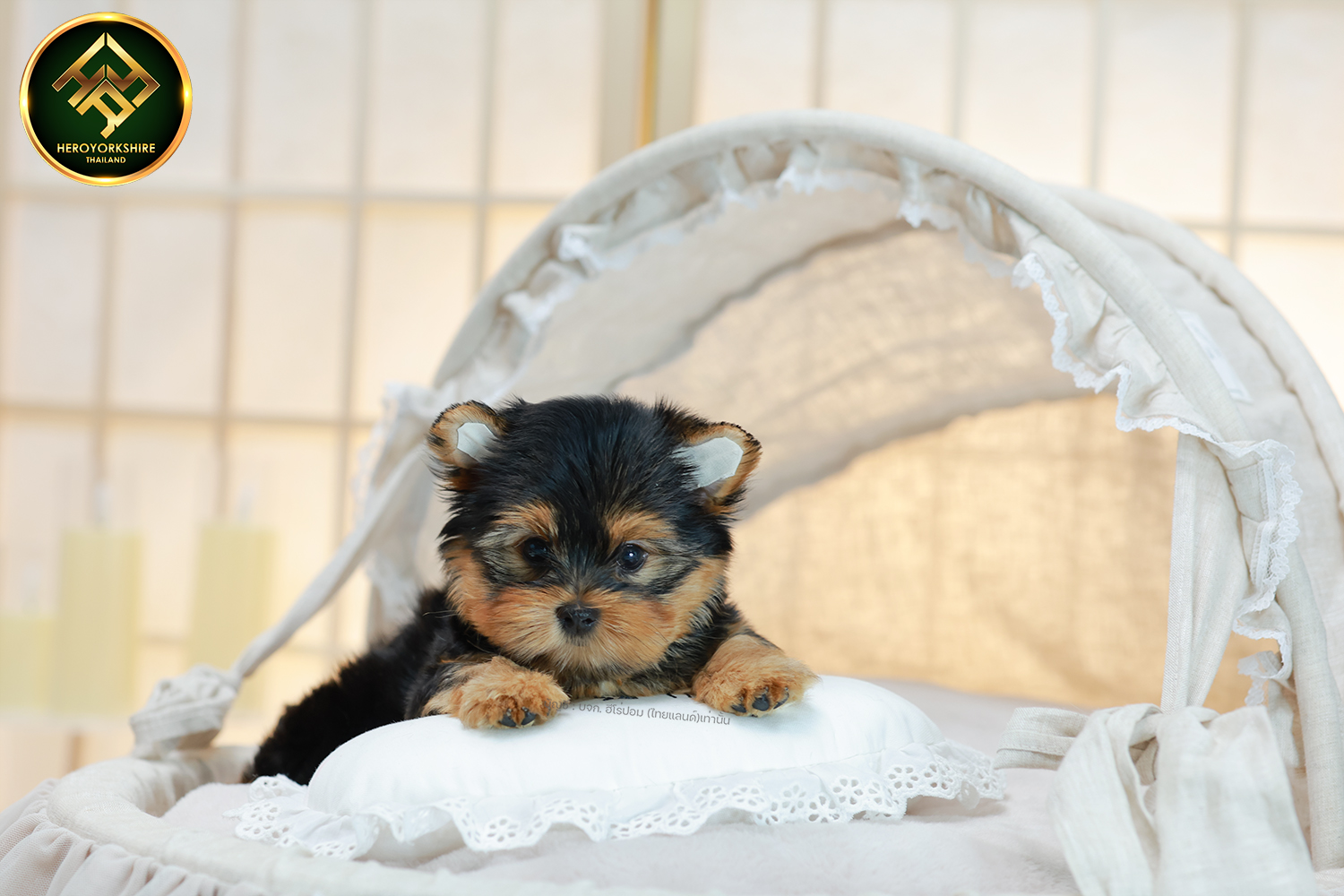 ยอร์คเชียร์ เทอร์เรีย HYM-68763 เพศชาย สีแบล็คแทน อายุ 2 เดือน ตัวเล็ก ขาสั้น หน้าสั้น ขนแน่นฟู
