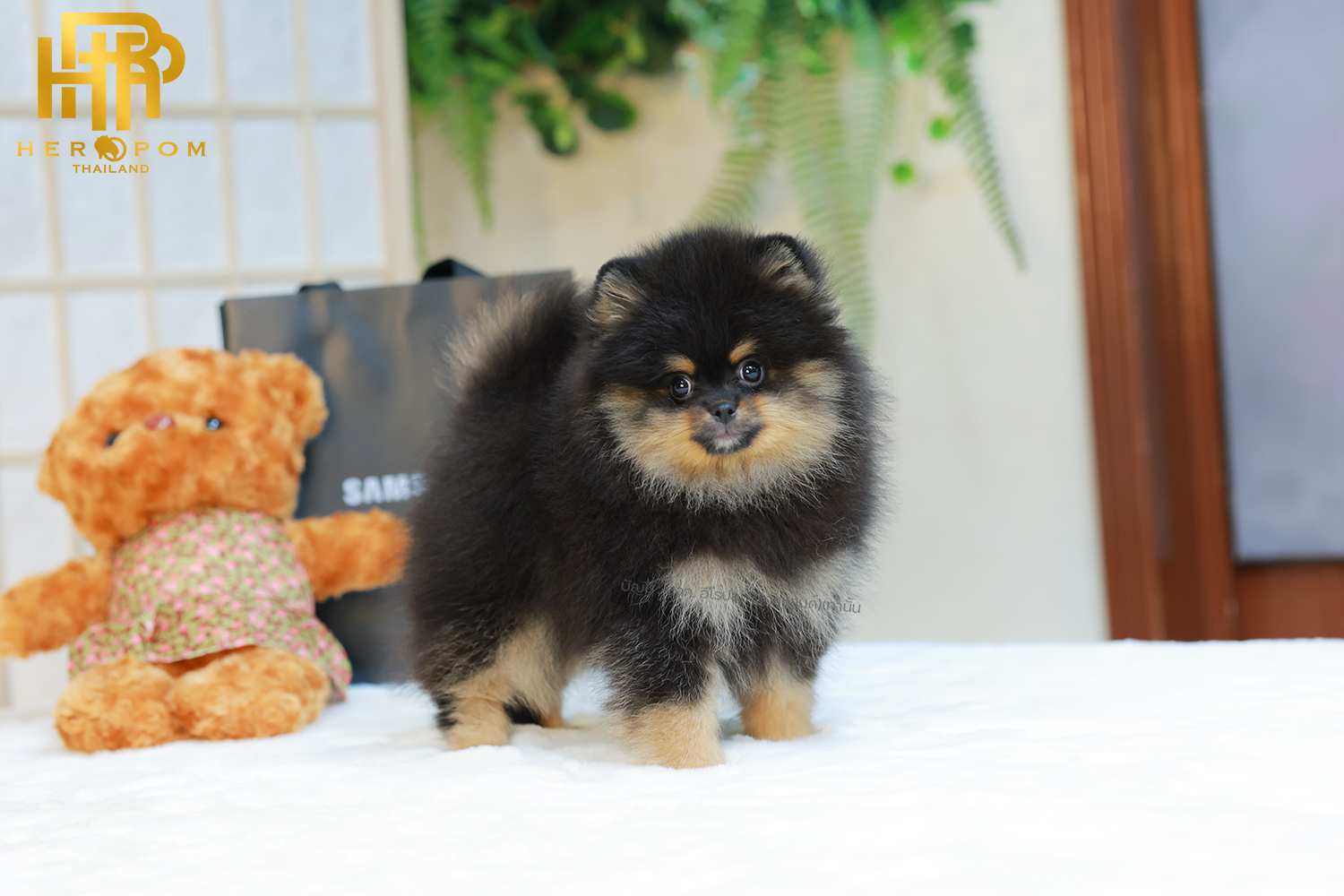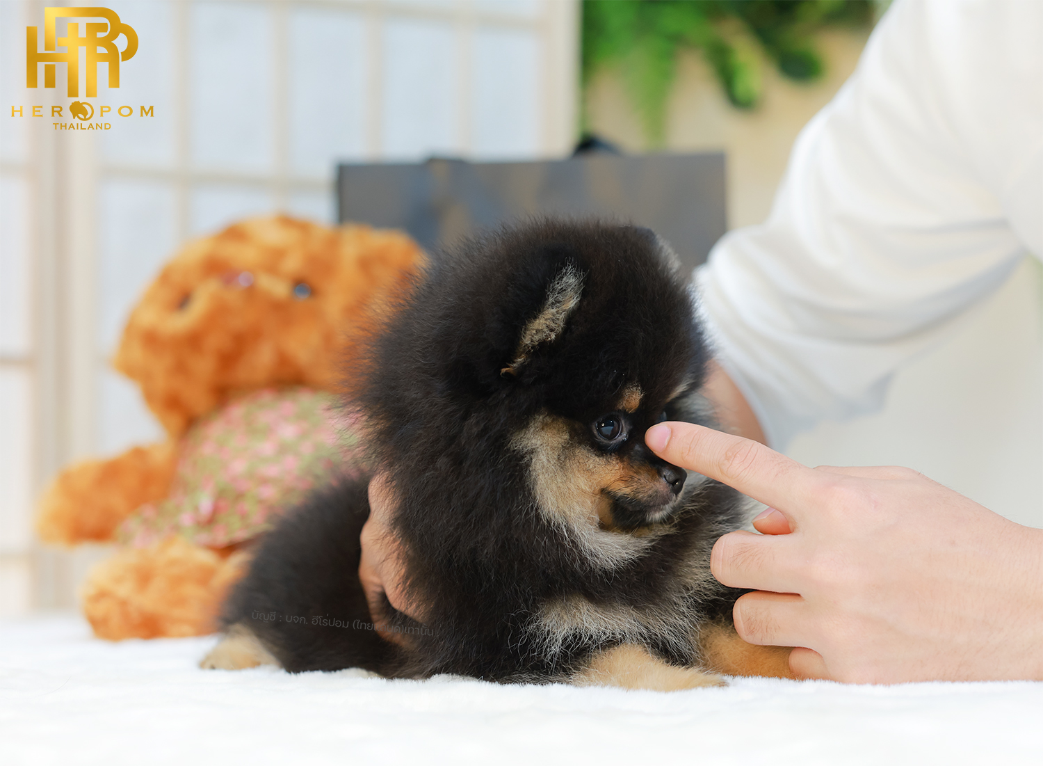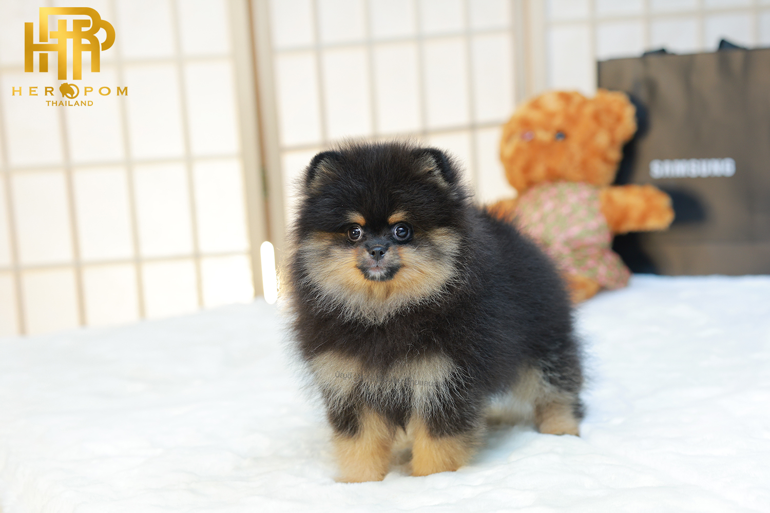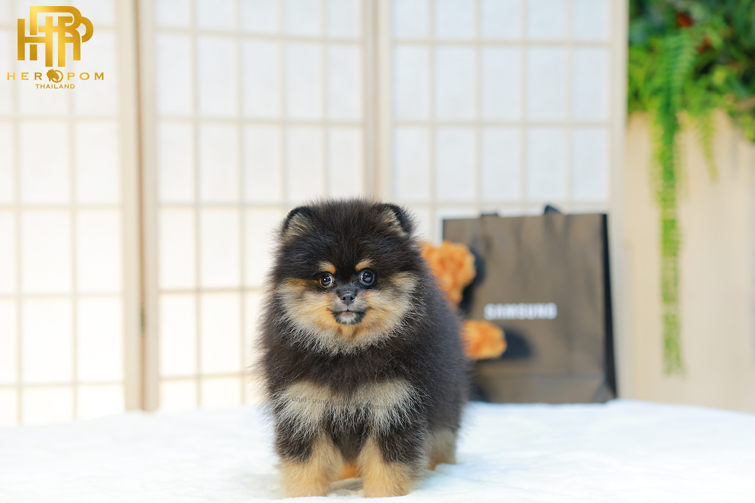 ปอมแท้ ปอมเมอเรเนียนฃ HRM-68133 เพศชาย สีแบล็คแทน อายุ 2 เดือน ตัวเล็ก ขาสั้น หน้าสั้น ขนแน่นฟู