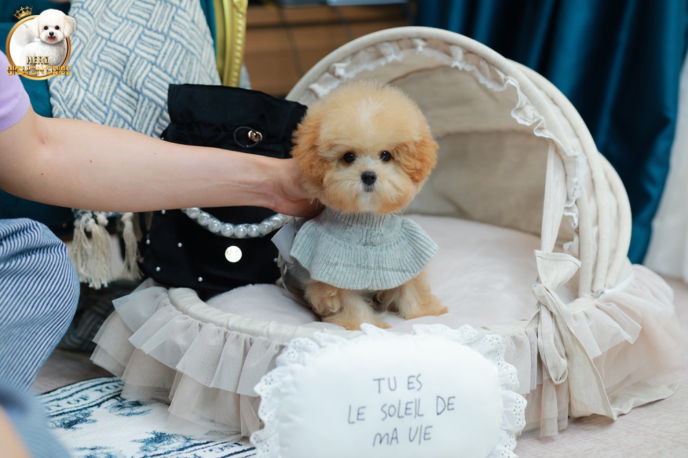 บิซองพู BCF-35598 เพศหญิง สีแชมเปญ อายุ 2 เดือน ตัวเล็ก ขาสั้น หน้าสั้น ขนแน่นฟู
