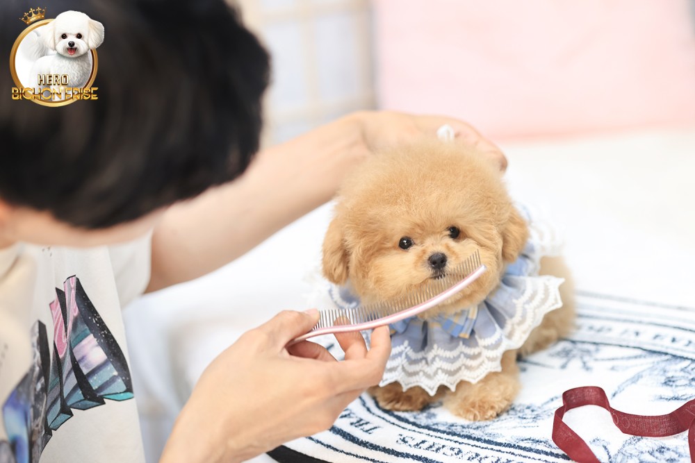 บิซองพู BCM-59694 เพศชาย สีแชมเปญ อายุ 2 เดือน ตัวเล็ก ขาสั้น หน้าสั้น ขนแน่นฟู