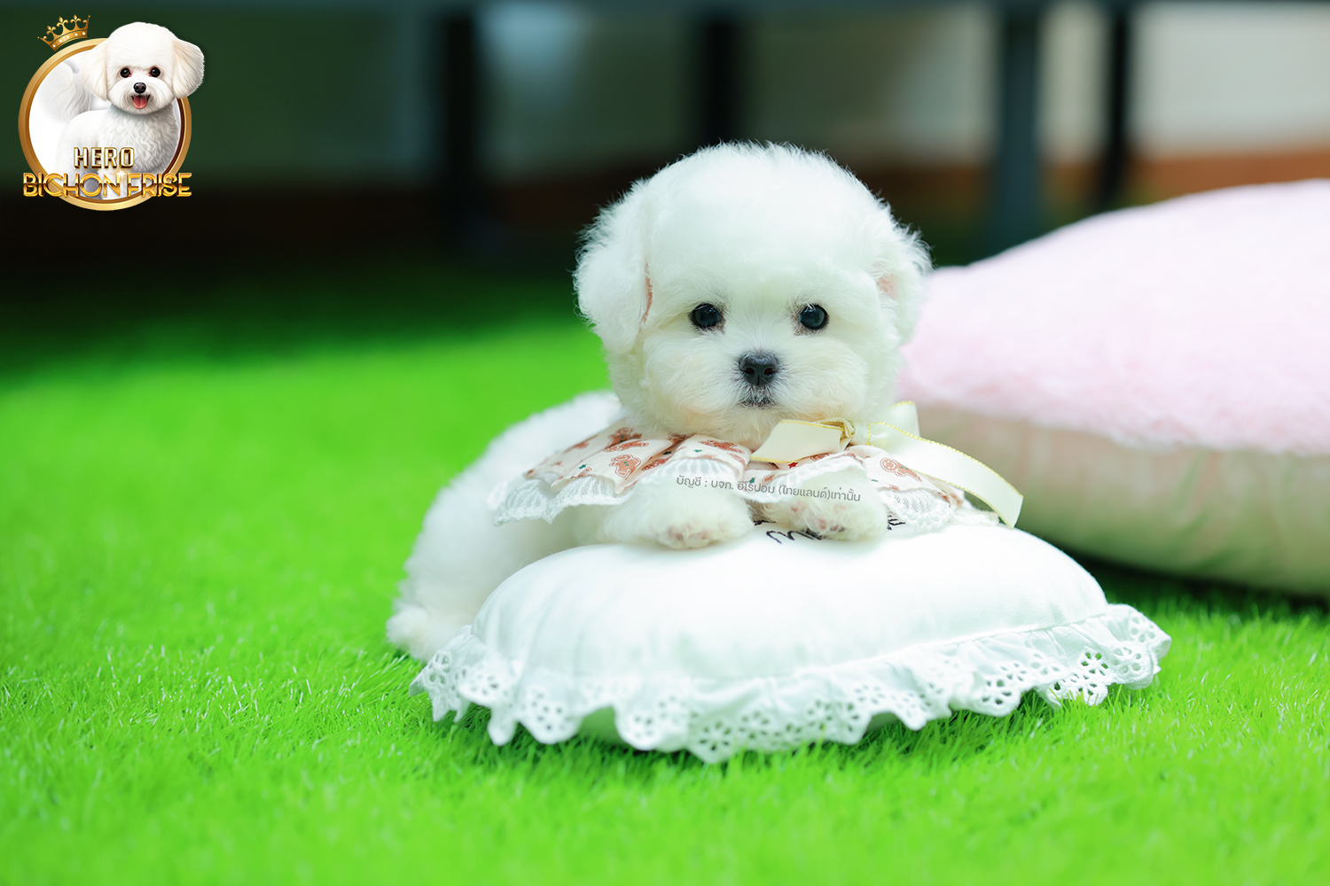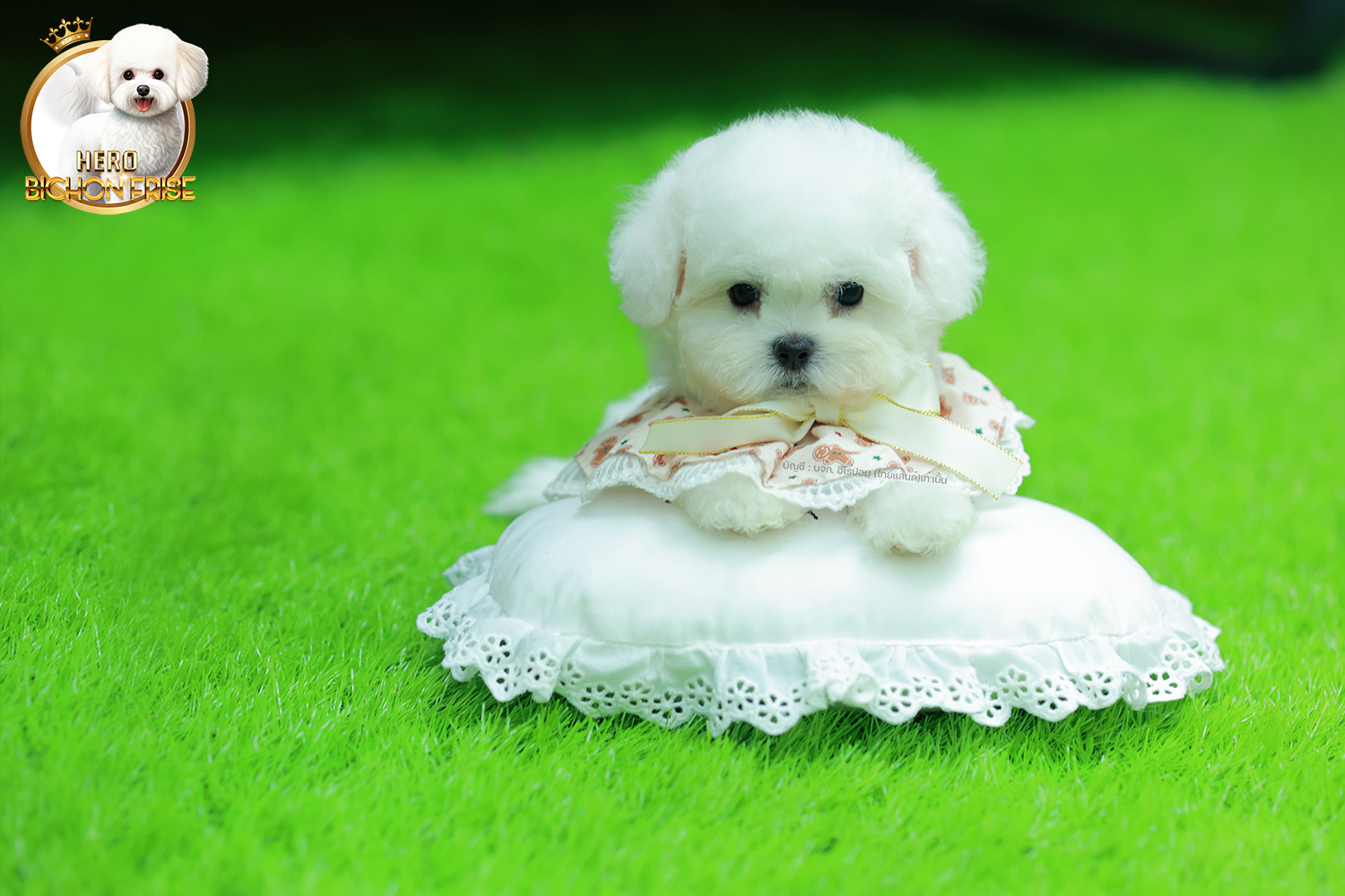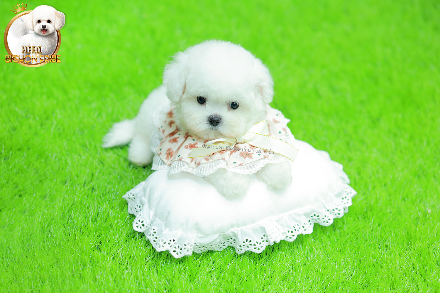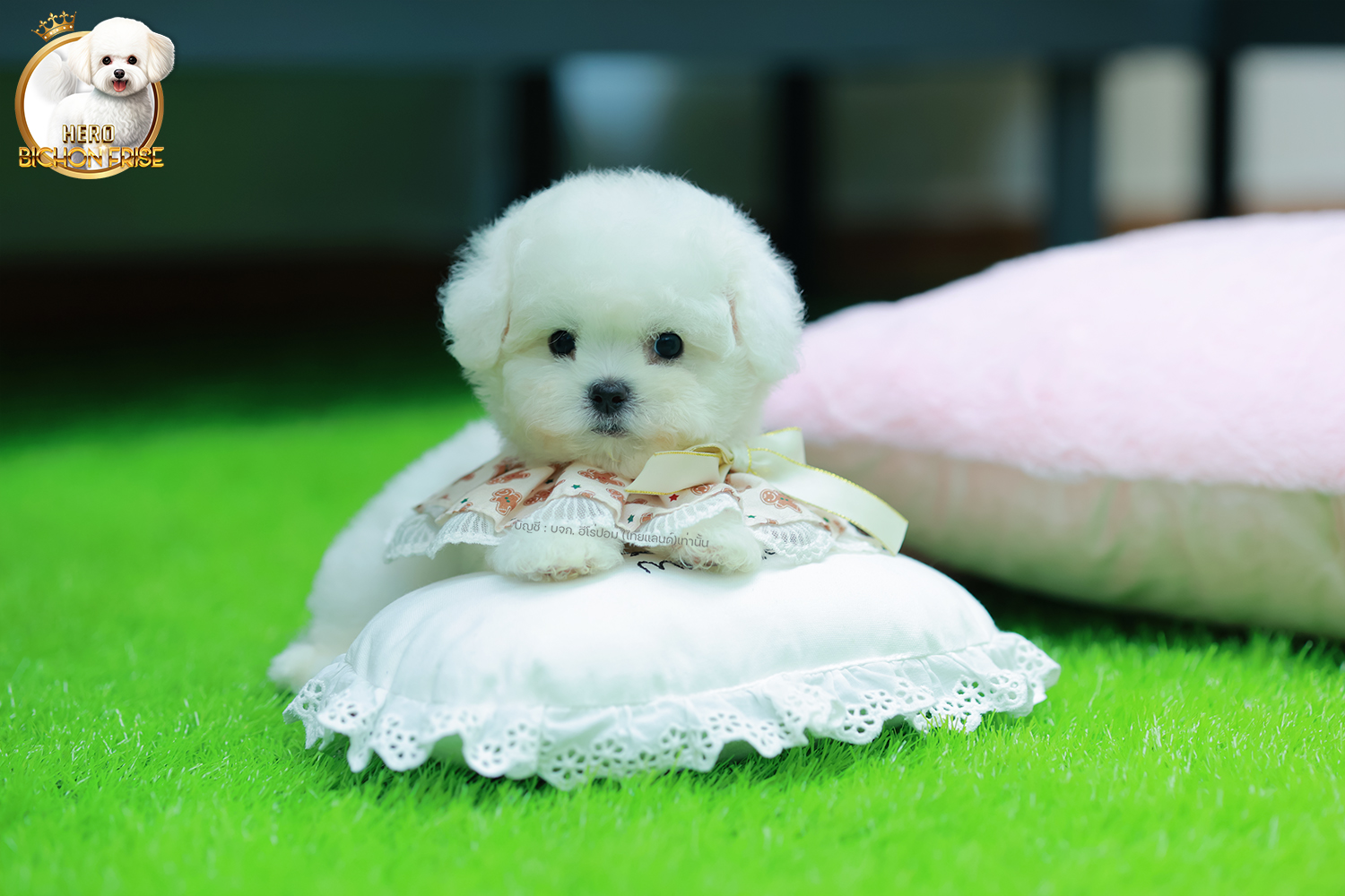 บิซอง ฟริเซ่ BCM-68345 เพศชาย สีขาว อายุ 2 เดือน ตัวเล็ก ขาสั้น หน้าสั้น ขนแน่นฟู