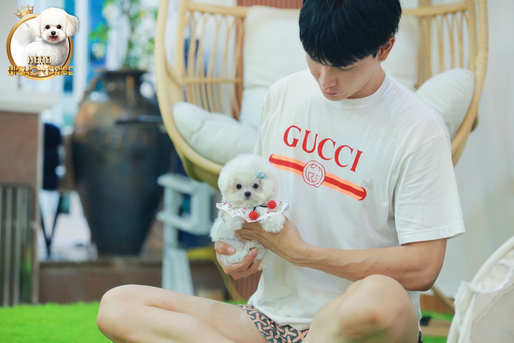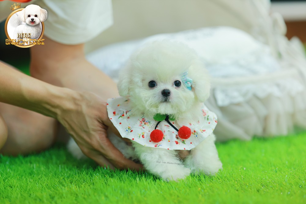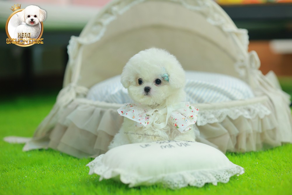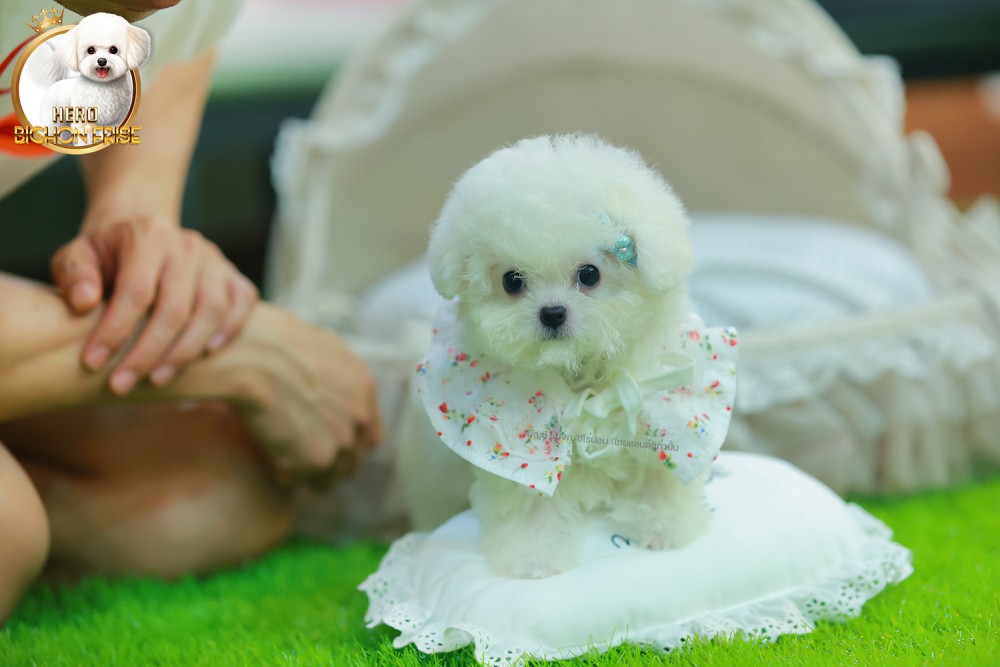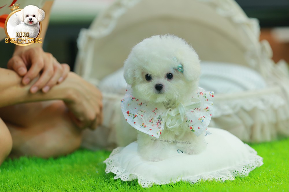 มินิบิชอง BCF-56077 เพศหญิง สีขาว อายุ 2 เดือน หน้าตาน่ารัก ขาสั้น ขนแน่นฟู ขี้เล่นมาก