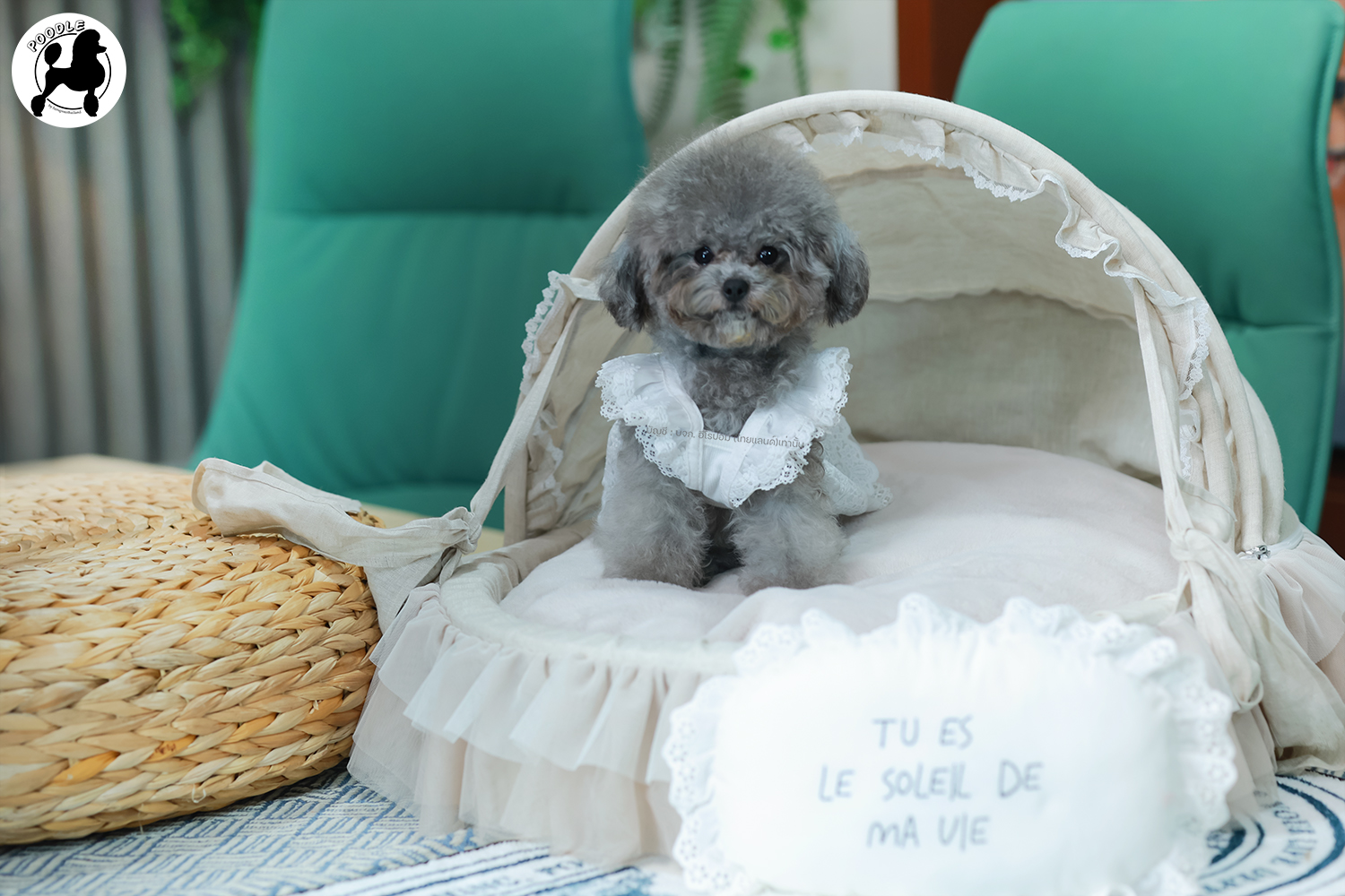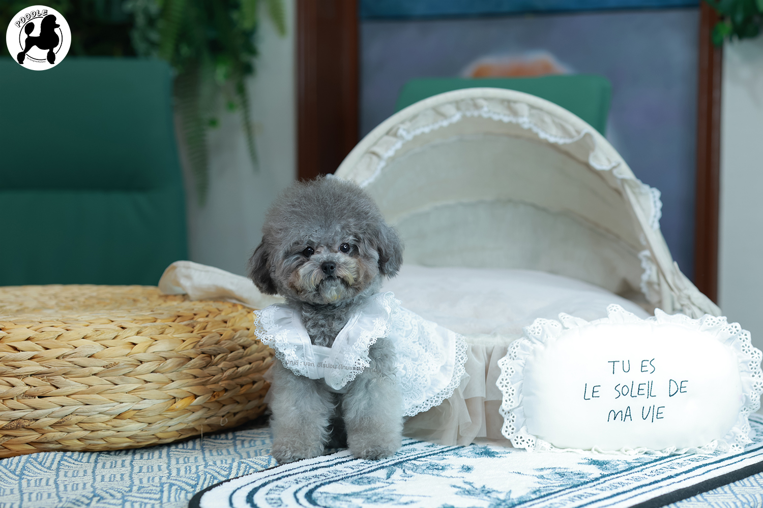 พุดเดิ้ล PDF-35594 เพศหญิง สีเทา อายุ 2 เดือน ตัวเล็ก ขาสั้น หน้าสั้น ขนแน่นฟู