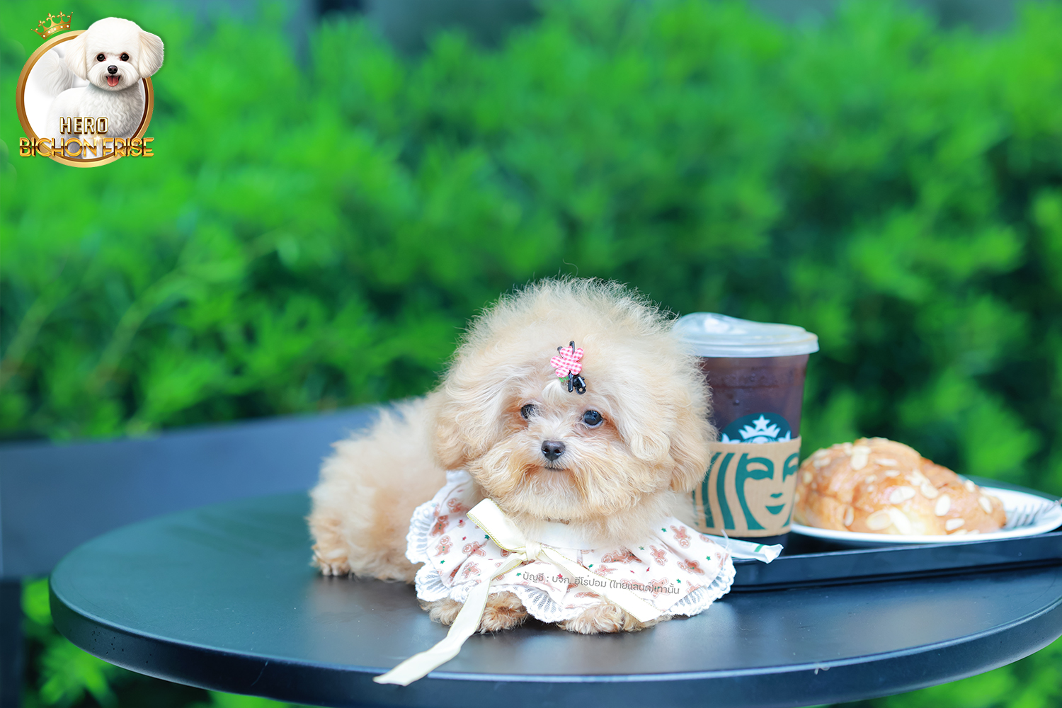 บิซองพู BCM-595919 เพศชาย สีแชมเปญ อายุ 2 เดือน ตัวเล็ก ขาสั้น หน้าสั้น ขนแน่นฟู