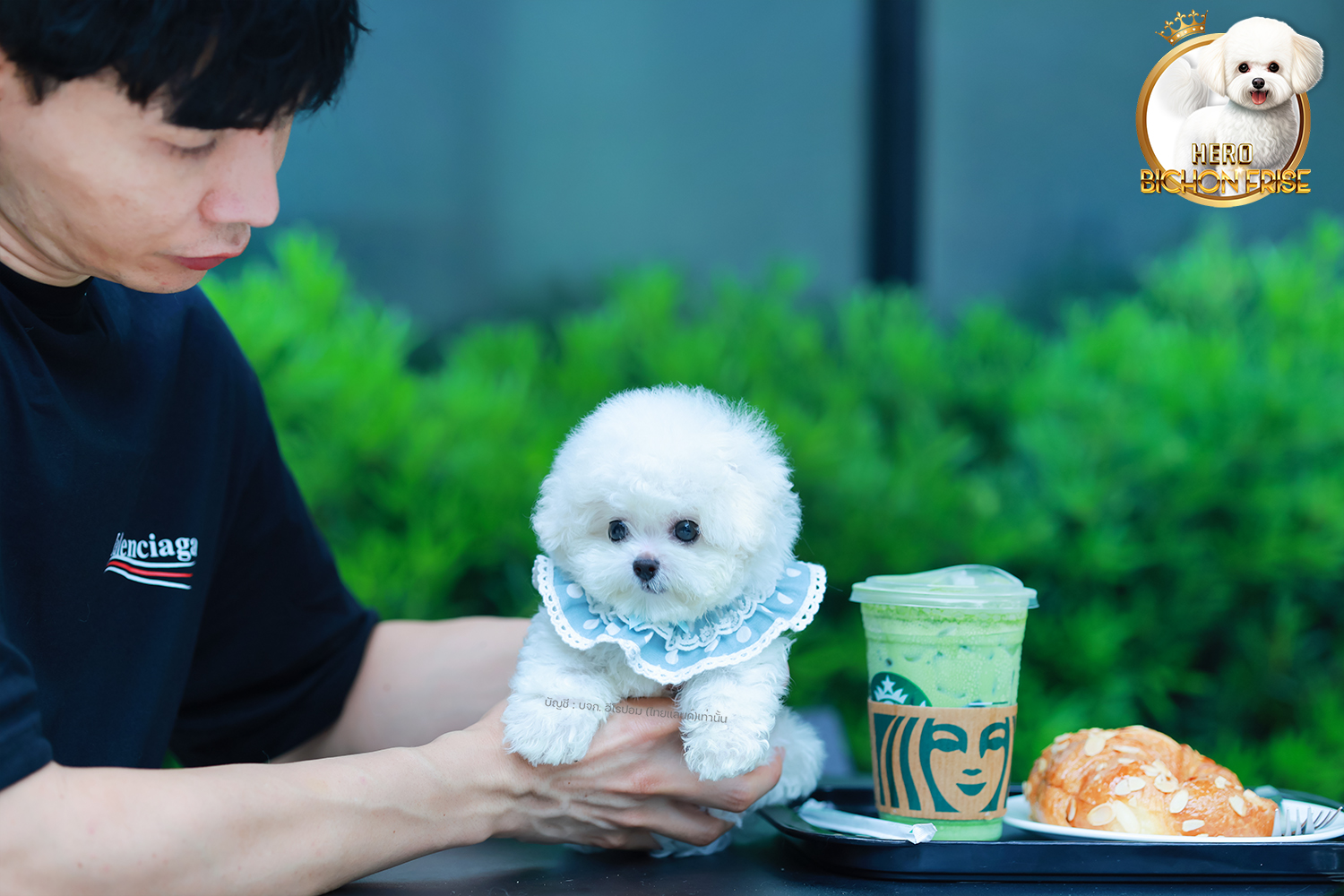 บิซอง ฟริเซ่ BCM-56080 เพศชาย สีขาว อายุ 2 เดือน ตัวเล็ก ขาสั้น หน้าสั้น ขนแน่นฟู