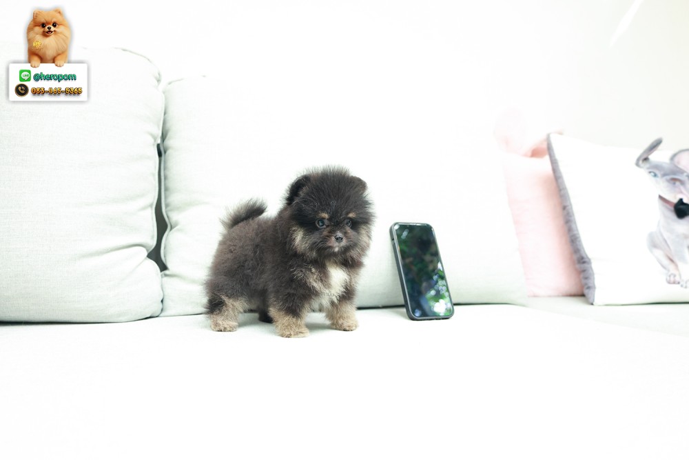 ปอมแท้ ปอมหน้าสั้น HRF-89101 เพศหญิง สี Black And Tan หนูพกถุงเท้ามาสองข้าง สีน่ารักมาก หน้าแบ๊ว ตากลมโต แผงอกสีขาว น่ารักสุด ๆ มีใบรับรองจากสมาคมพัฒนาพันธุ์สุนัข (ใบเพ็ดดีกรีเต็มใบ) ส่งทั่วประเทศ