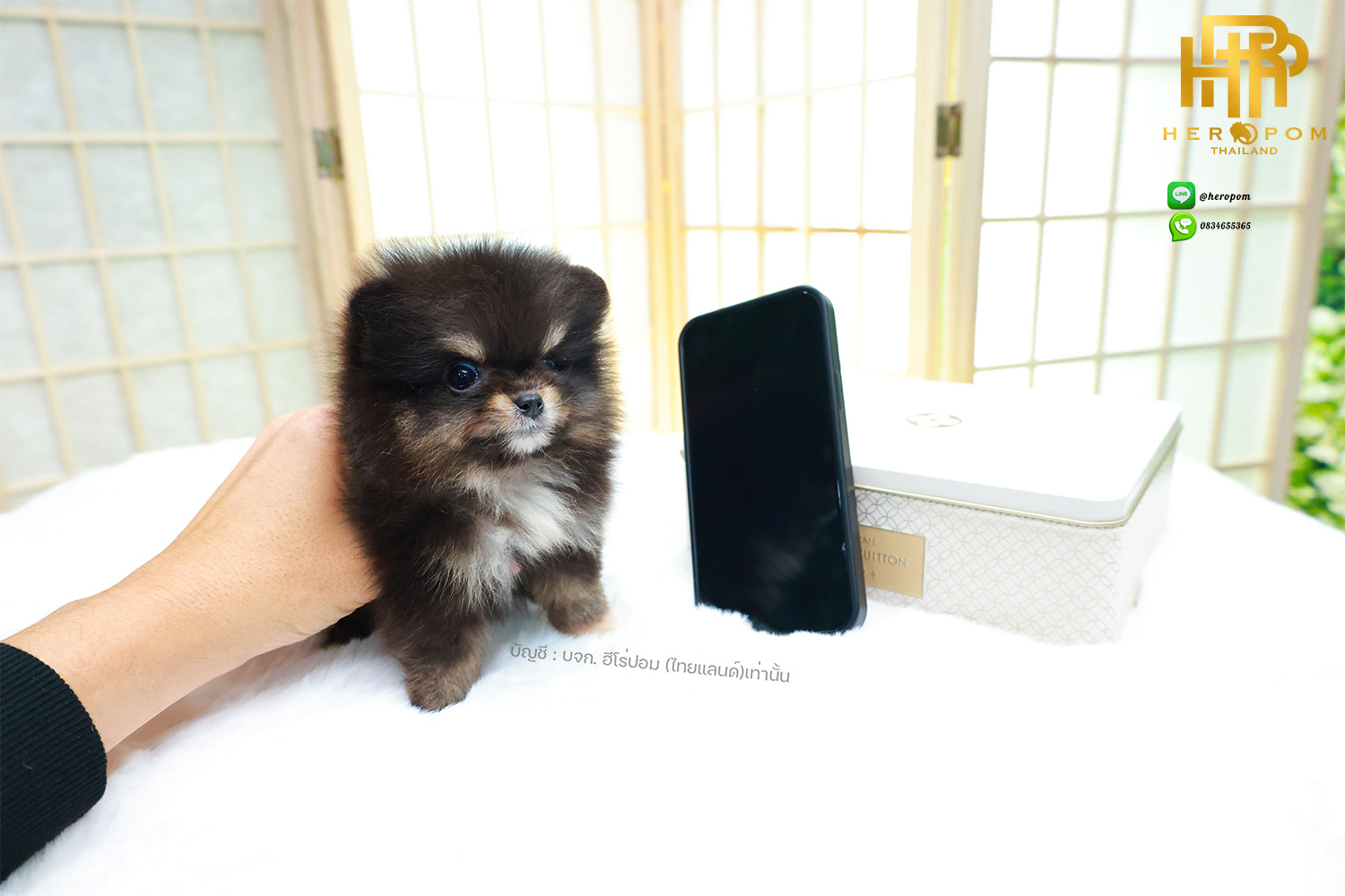 ปอมแท้ ปอมหน้าสั้น HRF-89111 เพศหญิง สี Black And Tan น่ารักสุด ๆ สีเก๋มาก ๆ สดใส ร่าเริง น้องเข้ากับคนง่ายสุด ๆ มีใบรับรองจากสมาคมพัฒนาพันธุ์สุนัข (ใบเพ็ดดีกรีเต็มใบ) ส่งทั่วประเทศ