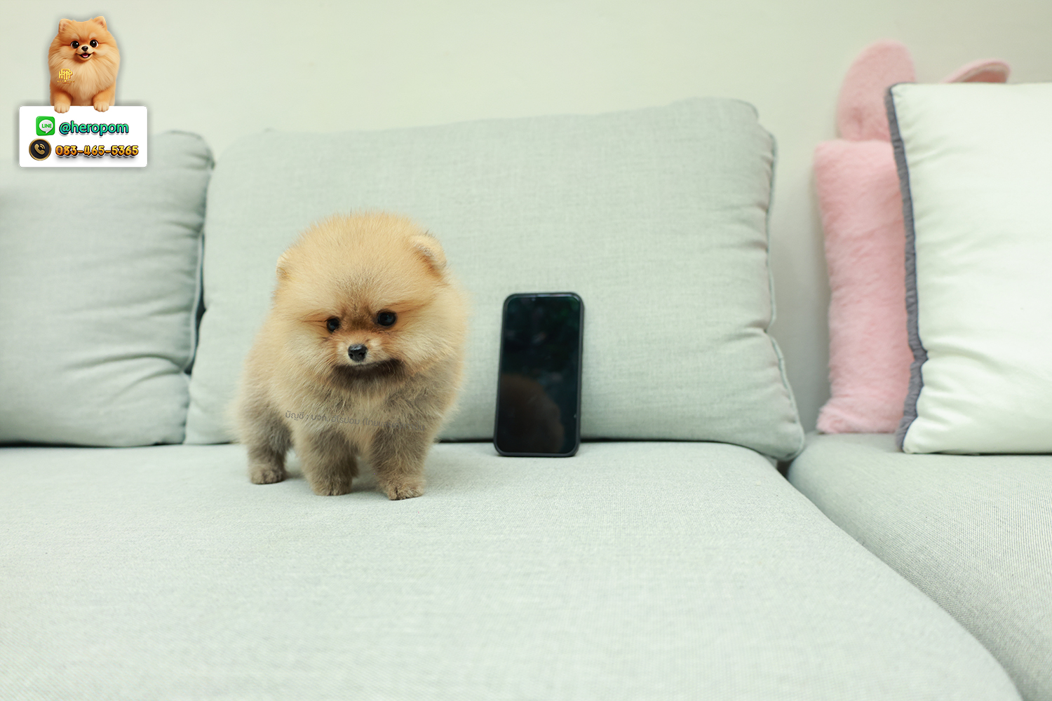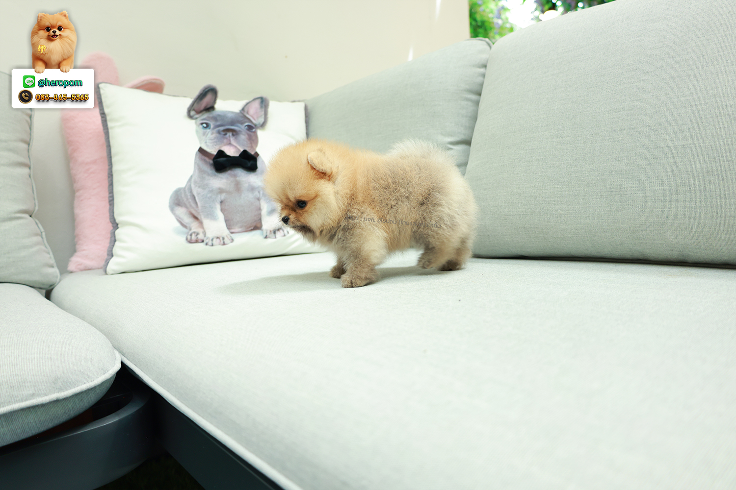 ปอมแท้ ปอมหน้าสั้น HRM-26223 เพศชาย สีส้ม อายุ 2 เดือน ขาสั้น ขนแน่น หน้าตาน่ารัก มีใบรับรองจากสมาคมพัฒนาพันธุ์สุนัข (ใบเพ็ดดีกรีเต็มใบ) ส่งทั่วประเทศ