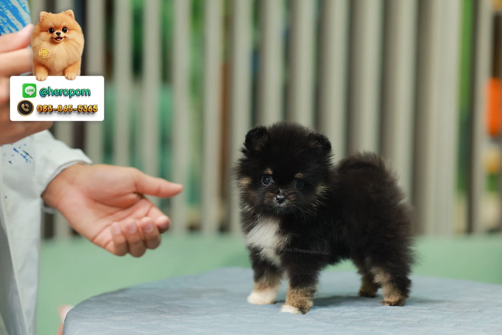 ปอมแท้ ปอมหน้าหมี HRF-26231 เพศหญิง สีแบล็คแทน อายุ 2 เดือน ขาสั้น ขนแน่น หน้าตาน่ารัก มีใบรับรองจากสมาคมพัฒนาพันธุ์สุนัข (ใบเพ็ดดีกรีเต็มใบ) ส่งทั่วประเทศ