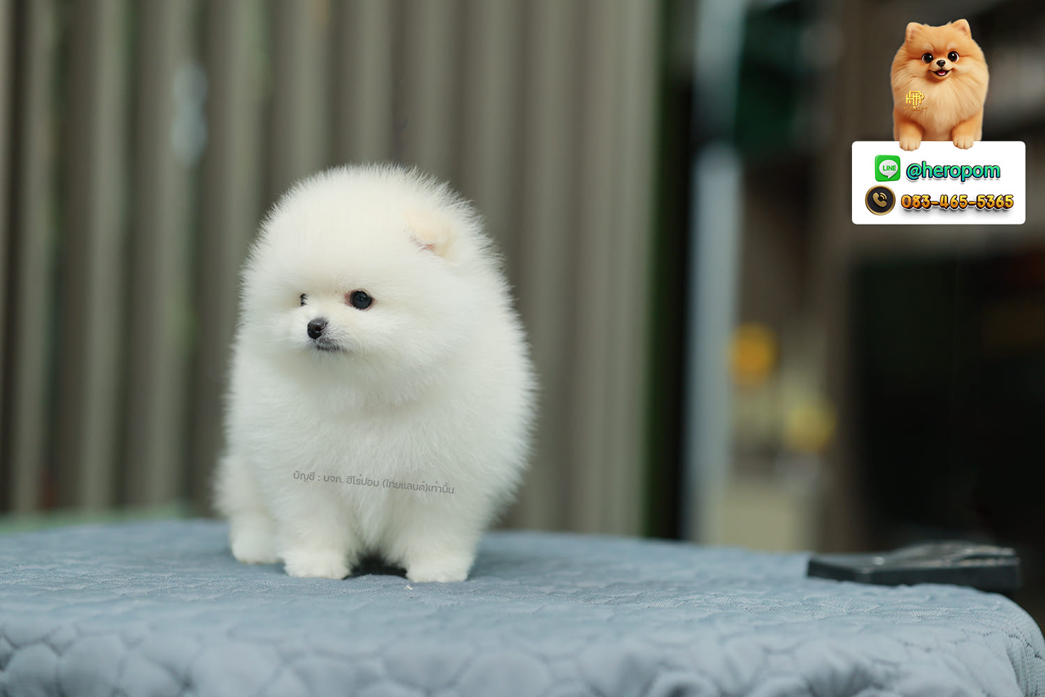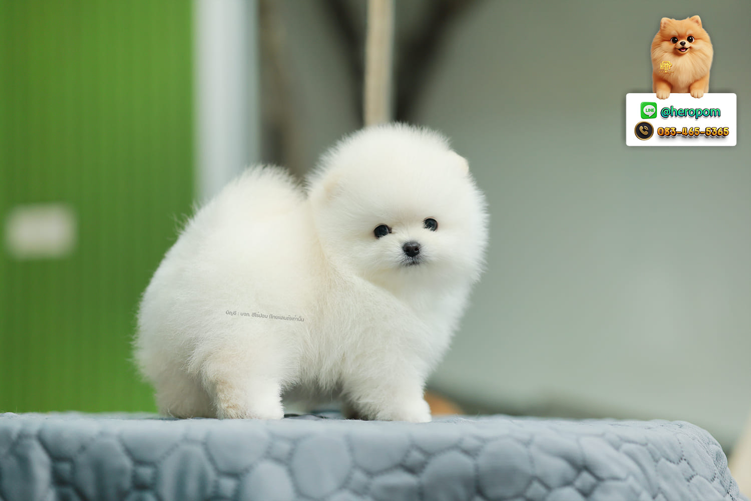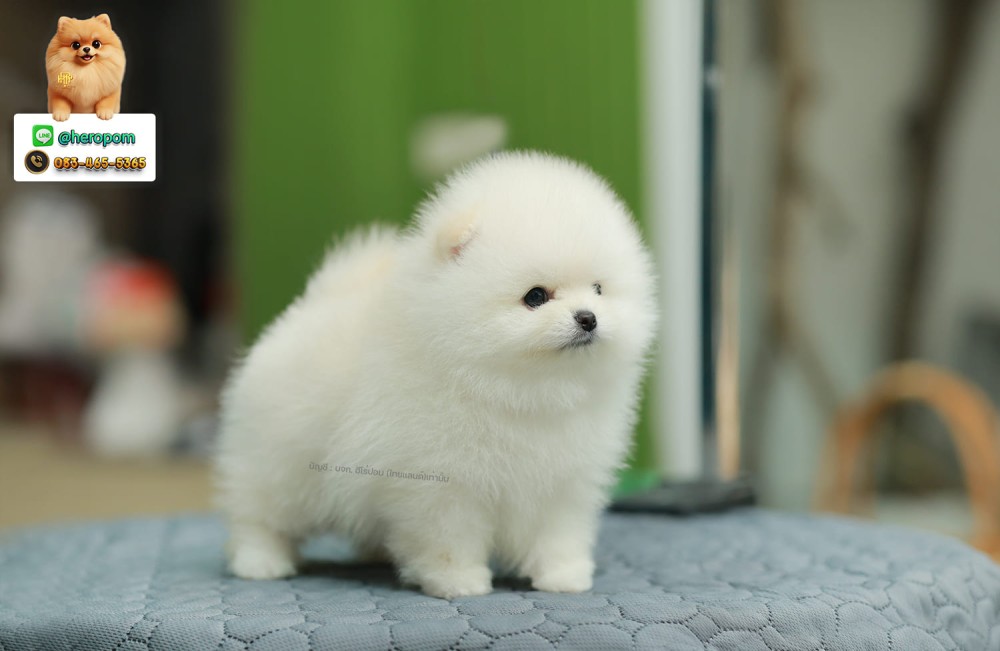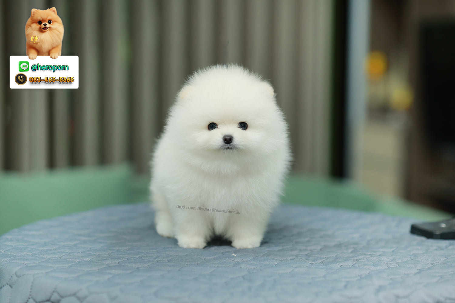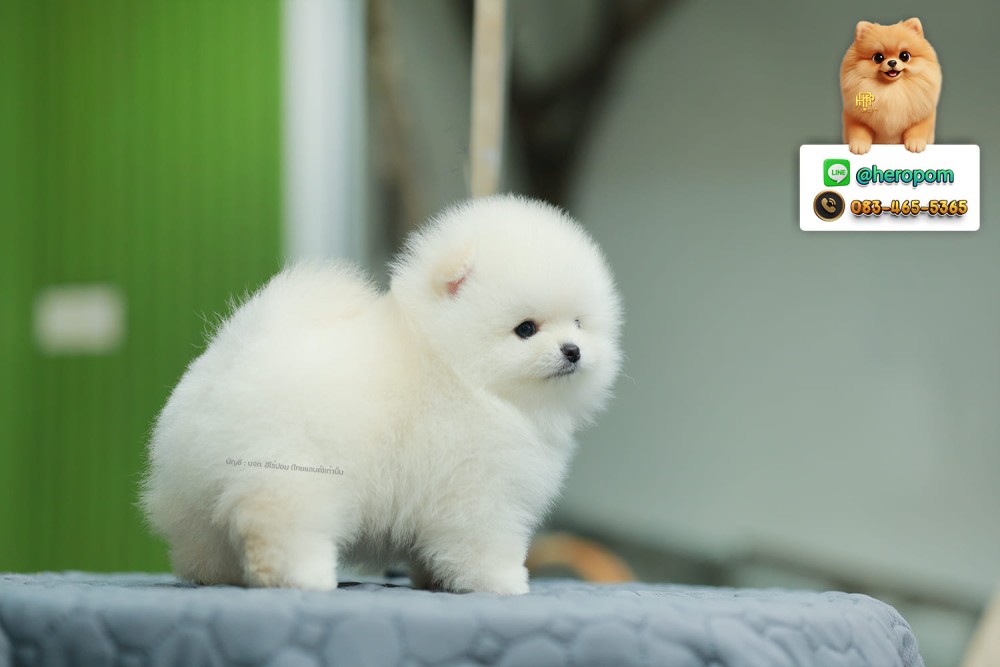 ปอมแท้ ปอมหน้าหมี HRM-89139 เพศชาย สีขาว อายุ 2 เดือน ขาสั้น ขนแน่น หน้าตาน่ารัก มีใบรับรองจากสมาคมพัฒนาพันธุ์สุนัข (ใบเพ็ดดีกรีเต็มใบ) ส่งทั่วประเทศ