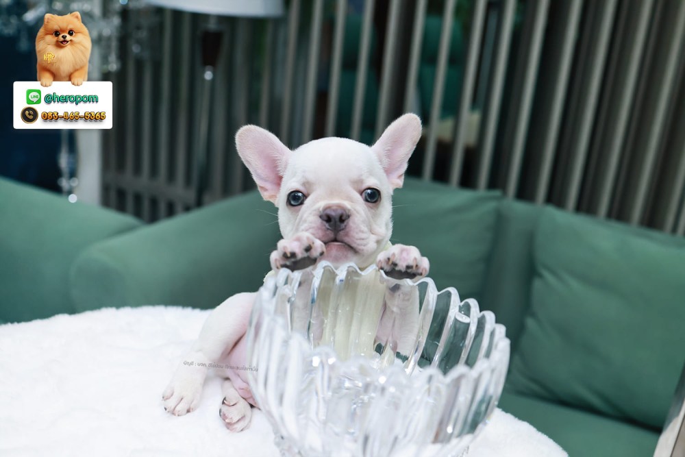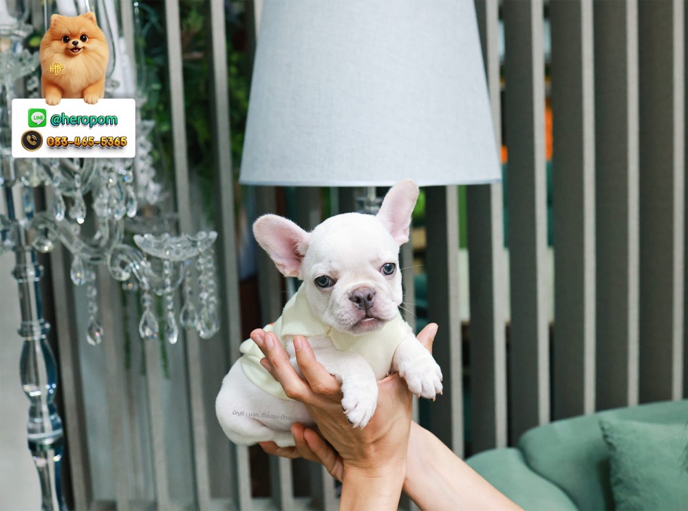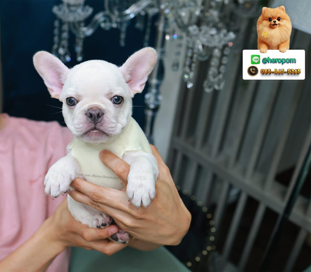 เฟรน บลูด็อก FHM-89131 เพศชาย สี ขาว ตัวจิ๋วตัวเล็กมาก สีสวย เป็นเจ้าเด็กอ้วนที่จ้ำม่ำน่าอุ้มมาก มีใบรับรองจากสมาคมพัฒนาพันธุ์สุนัข (ใบเพ็ดดีกรีเต็มใบ) ส่งทั่วประเทศ