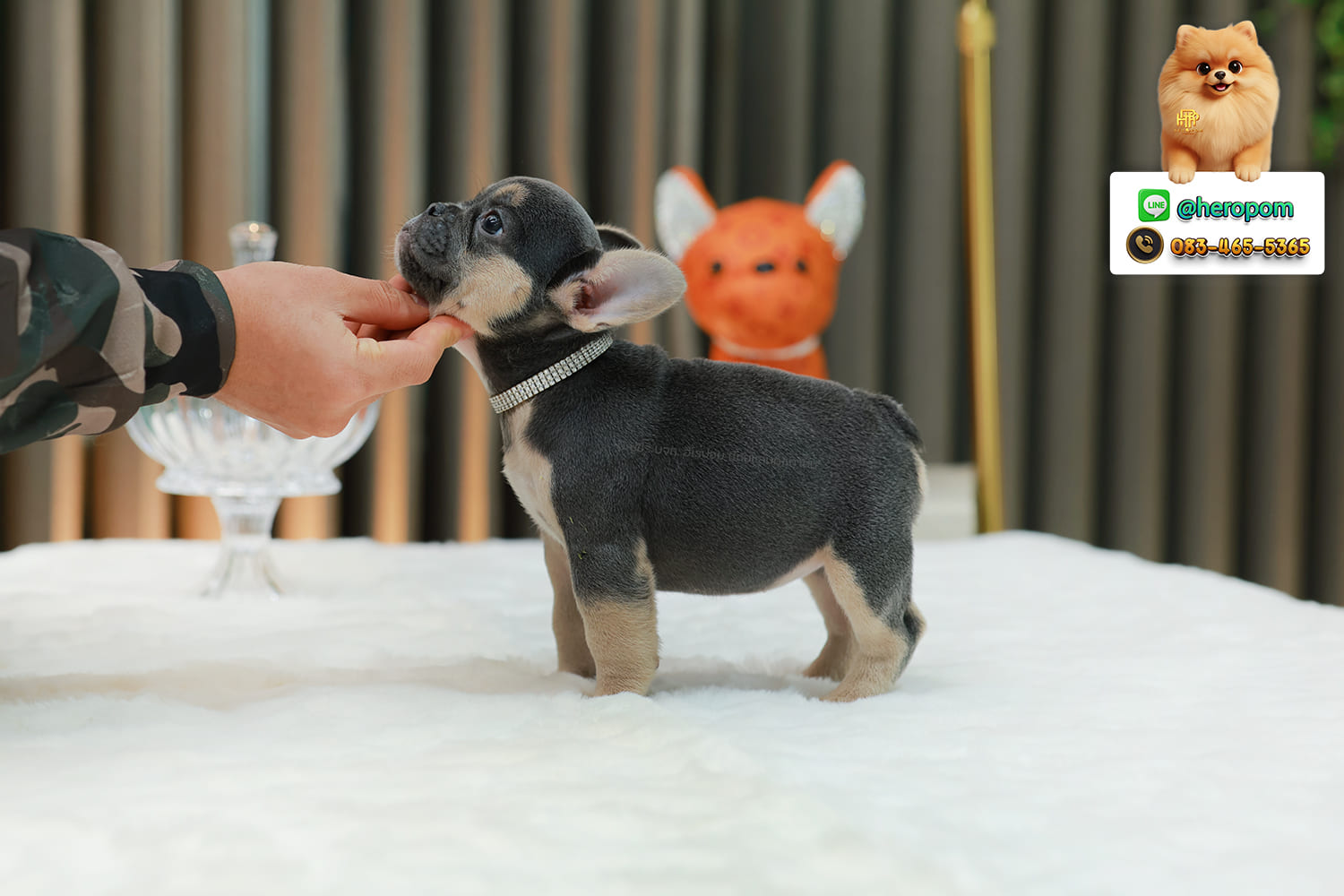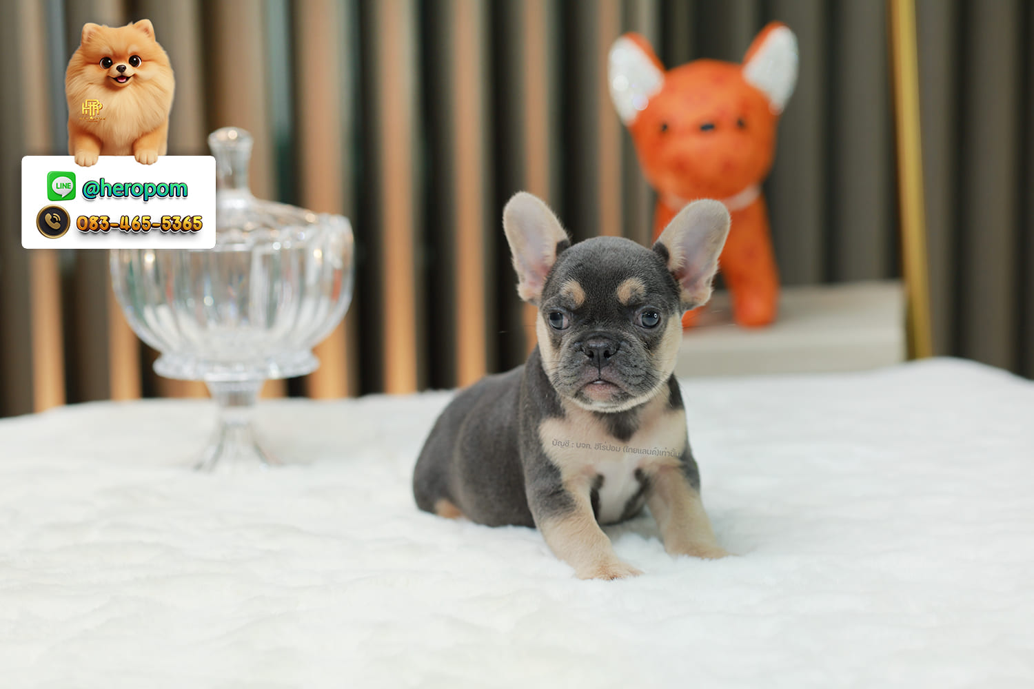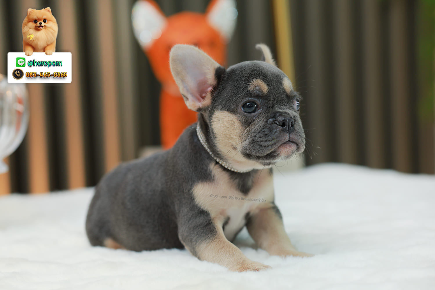 เฟรน บลูด็อก FHF-89132 เพศหญิง สีแบล็คแทน ตัวจิ๋วตัวเล็กมาก สีสวย เป็นเจ้าเด็กอ้วนที่จ้ำม่ำน่าอุ้มมาก มีใบรับรองจากสมาคมพัฒนาพันธุ์สุนัข (ใบเพ็ดดีกรีเต็มใบ) ส่งทั่วประเทศ