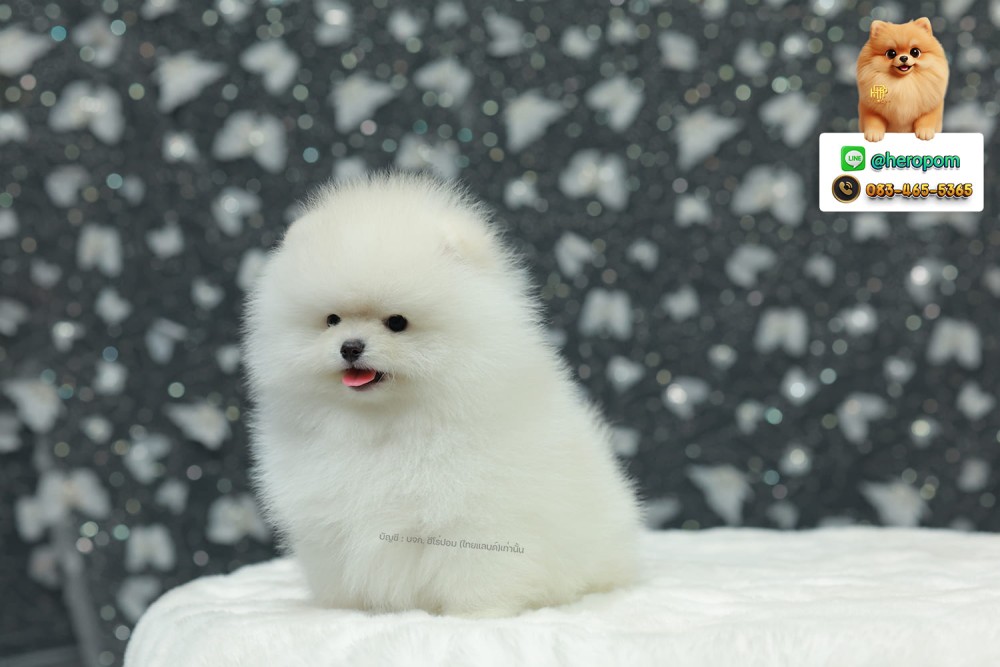 ปอมแท้ ปอมหน้าสั้น HRM-89144 เพศชาย สีขาว หนุ่มฮอต หน้าตาน่ารัก น่าเอ็นดูมาก ๆ แก้มนุ่ม ขาใหญ่ ขนแน่น พาราน่าร๊ากก มีใบรับรองจากสมาคมพัฒนาพันธุ์สุนัข (ใบเพ็ดดีกรีเต็มใบ) ส่งทั่วประเทศ