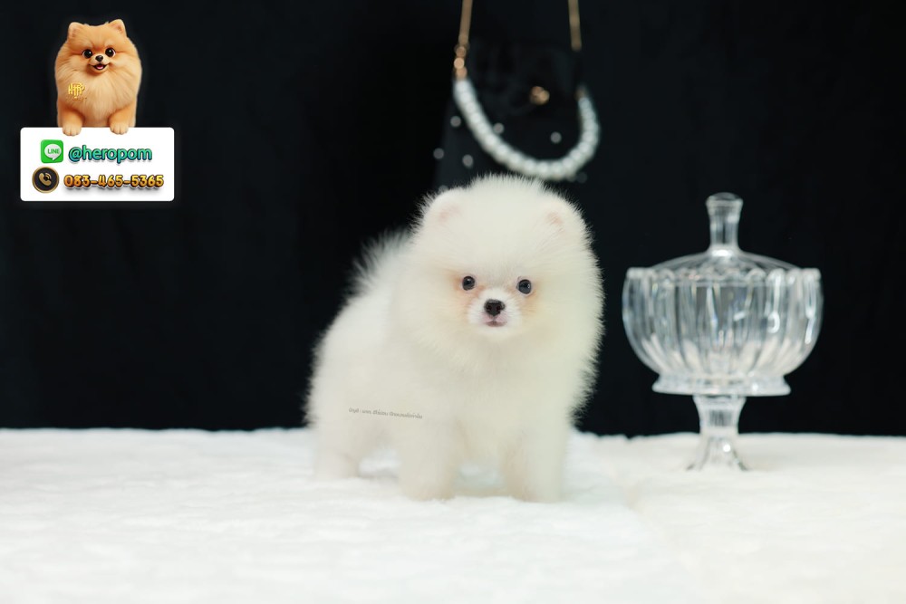 ปอมแท้ ปอมหน้าสั้น HRM-89121 เพศชาย สีครีม หนุ่มฮอต หน้าตาน่ารัก น่าเอ็นดูมาก ๆ แก้มนุ่ม ขาใหญ่ ขนแน่น พาราน่าร๊ากก มีใบรับรองจากสมาคมพัฒนาพันธุ์สุนัข (ใบเพ็ดดีกรีเต็มใบ) ส่งทั่วประเทศ