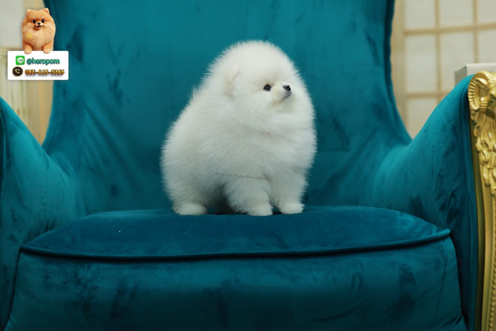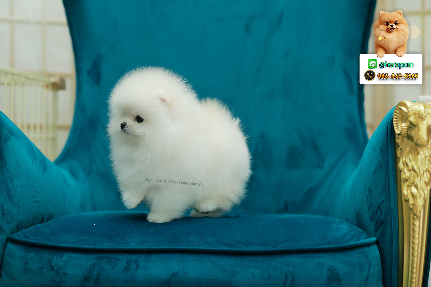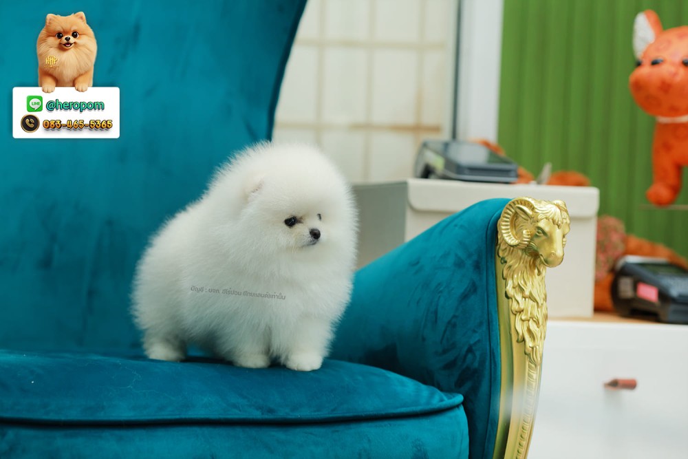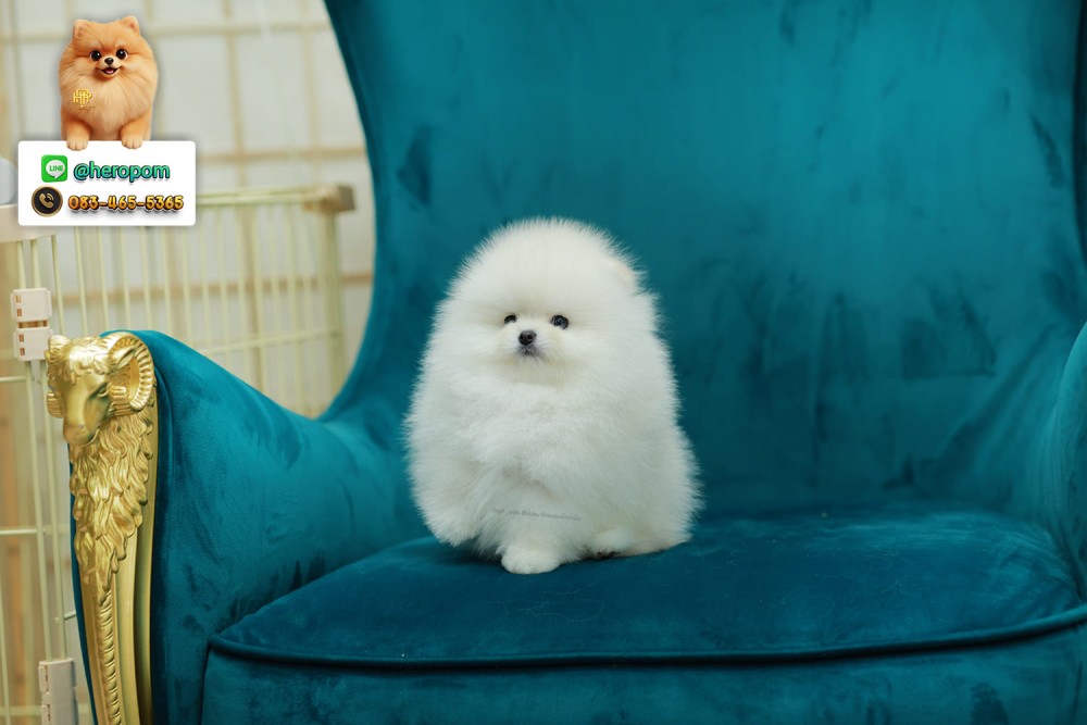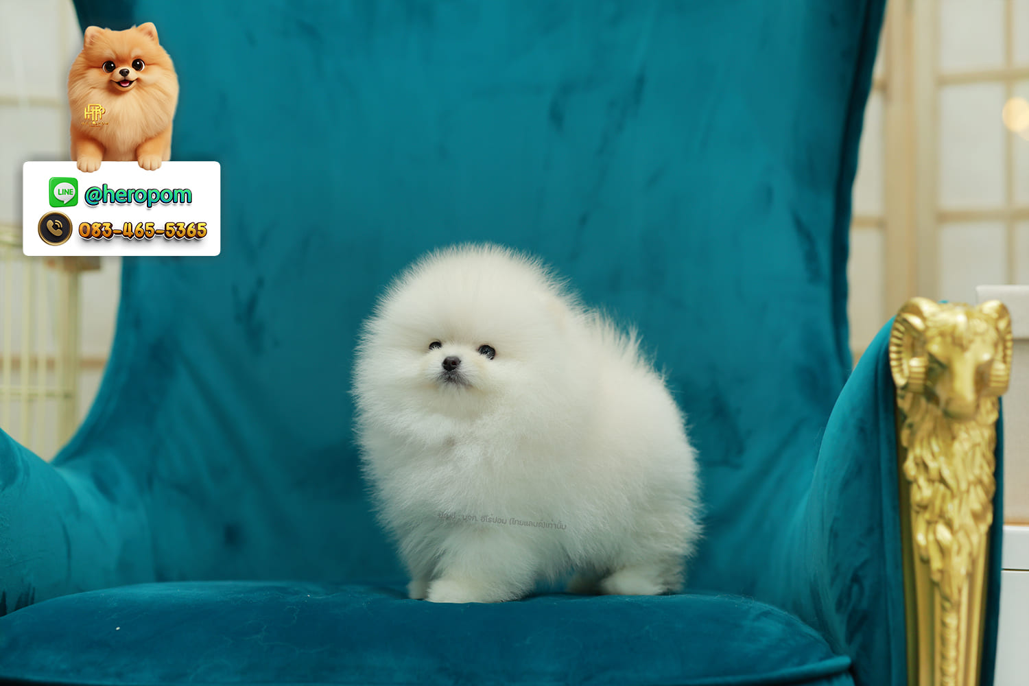 ปอมแท้ ปอมหน้าสั้น HRM-89139 เพศชาย สีขาว หนุ่มฮอต หน้าตาน่ารัก น่าเอ็นดูมาก ๆ แก้มนุ่ม ขาใหญ่ ขนแน่น พาราน่าร๊ากก มีใบรับรองจากสมาคมพัฒนาพันธุ์สุนัข (ใบเพ็ดดีกรีเต็มใบ) ส่งทั่วประเทศ