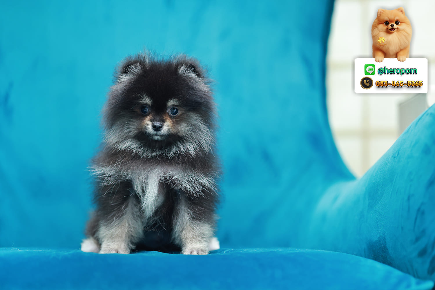 ปอมแท้ ปอมหน้าสั้น HRM-89106 เพศชาย สีแบล็คแทน หนุ่มฮอต หน้าตาน่ารัก น่าเอ็นดูมาก ๆ แก้มนุ่ม ขาใหญ่ ขนแน่น พาราน่าร๊ากก มีใบรับรองจากสมาคมพัฒนาพันธุ์สุนัข (ใบเพ็ดดีกรีเต็มใบ) ส่งทั่วประเทศ