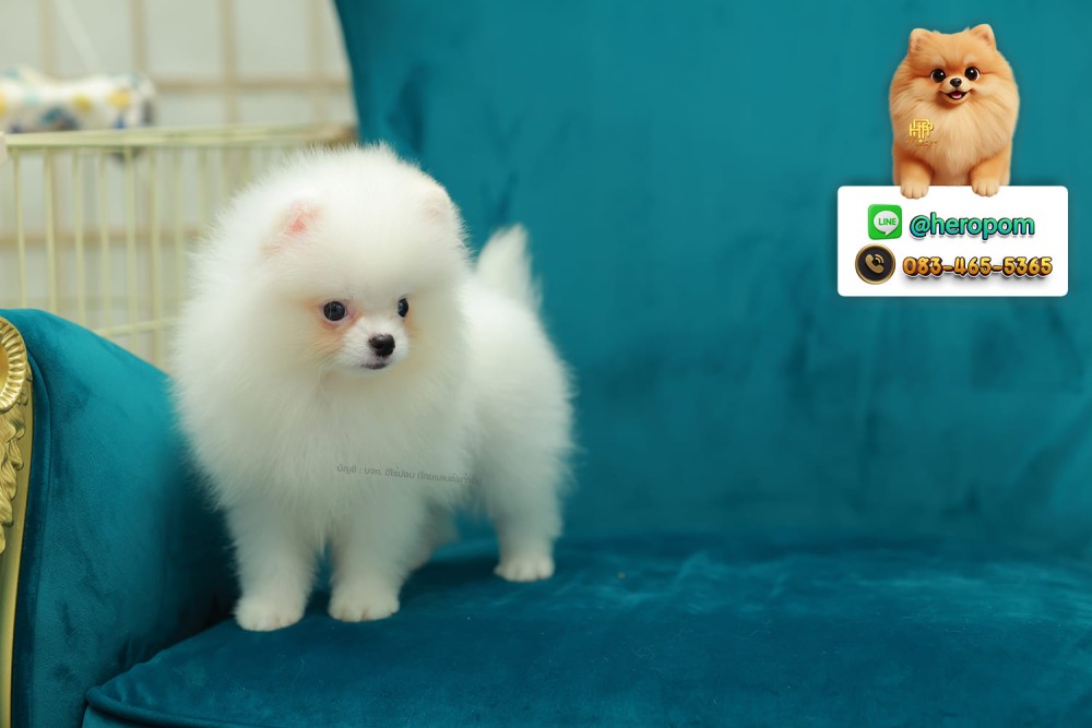 ปอมแท้ ปอมหน้าสั้น HRM-89121 เพศชาย สีขาวครีม หนุ่มฮอต หน้าตาน่ารัก น่าเอ็นดูมาก ๆ แก้มนุ่ม ขาใหญ่ ขนแน่น พาราน่าร๊ากก มีใบรับรองจากสมาคมพัฒนาพันธุ์สุนัข (ใบเพ็ดดีกรีเต็มใบ) ส่งทั่วประเทศ