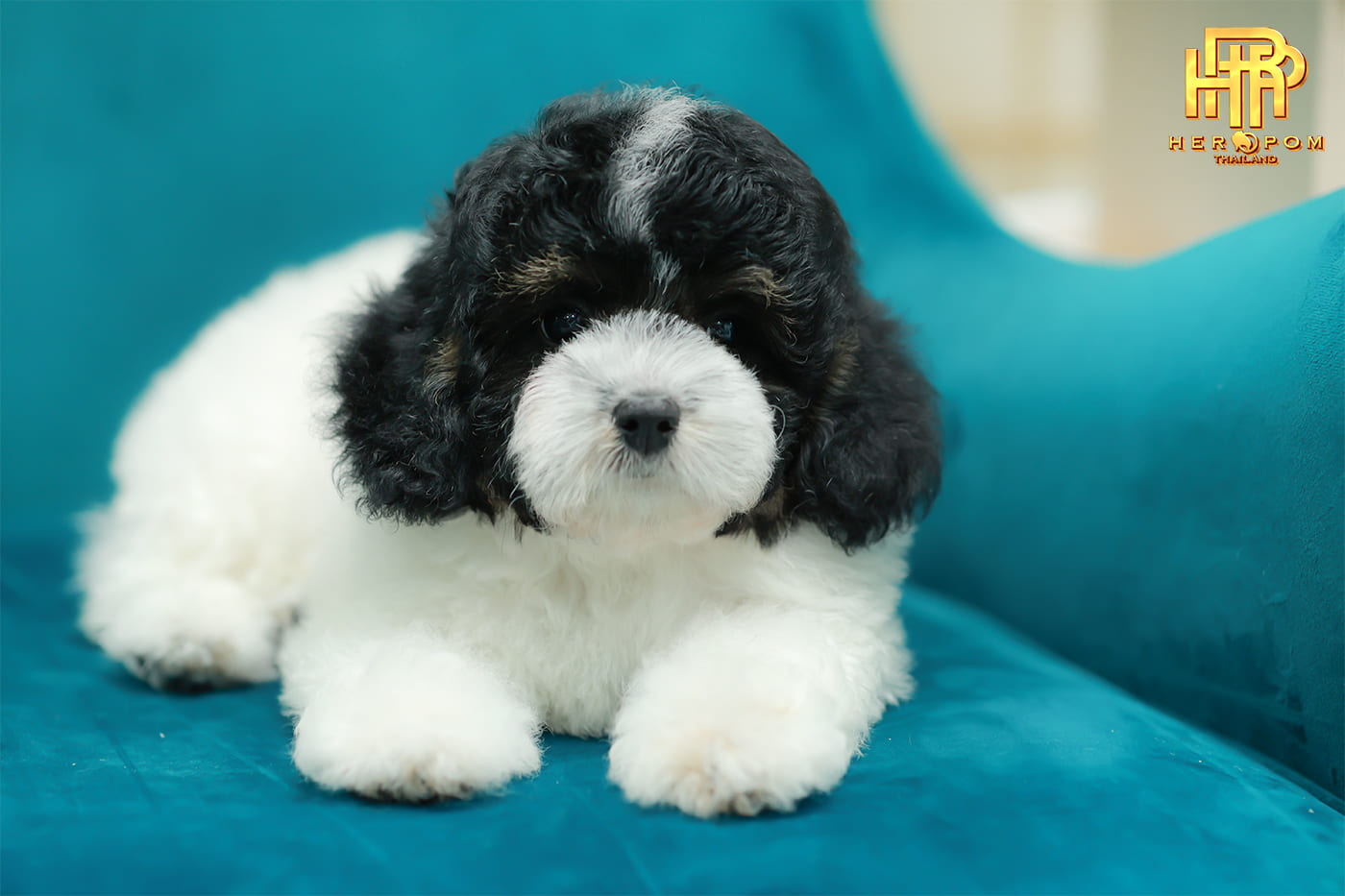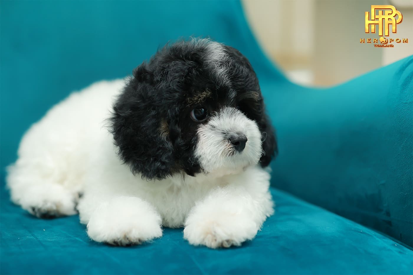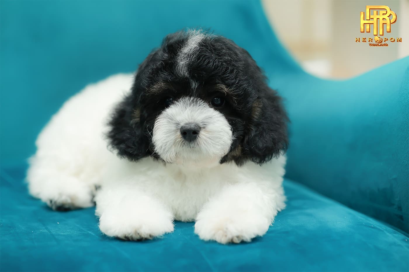 บิชองพู BCF-89129 เพศหญิง สีขาวดำ สีสวยน่ารัก ขนนุ่ม แน่นฟู ตัวจิ๋ว สดใส ร่าเริง น่ารักมาก ๆ เพาะพันธุ์ในไทย มีใบรับรองจากสมาคมพัฒนาพันธุ์สุนัข (ใบเพ็ดดีกรีเต็มใบ) ส่งทั่วประเทศ