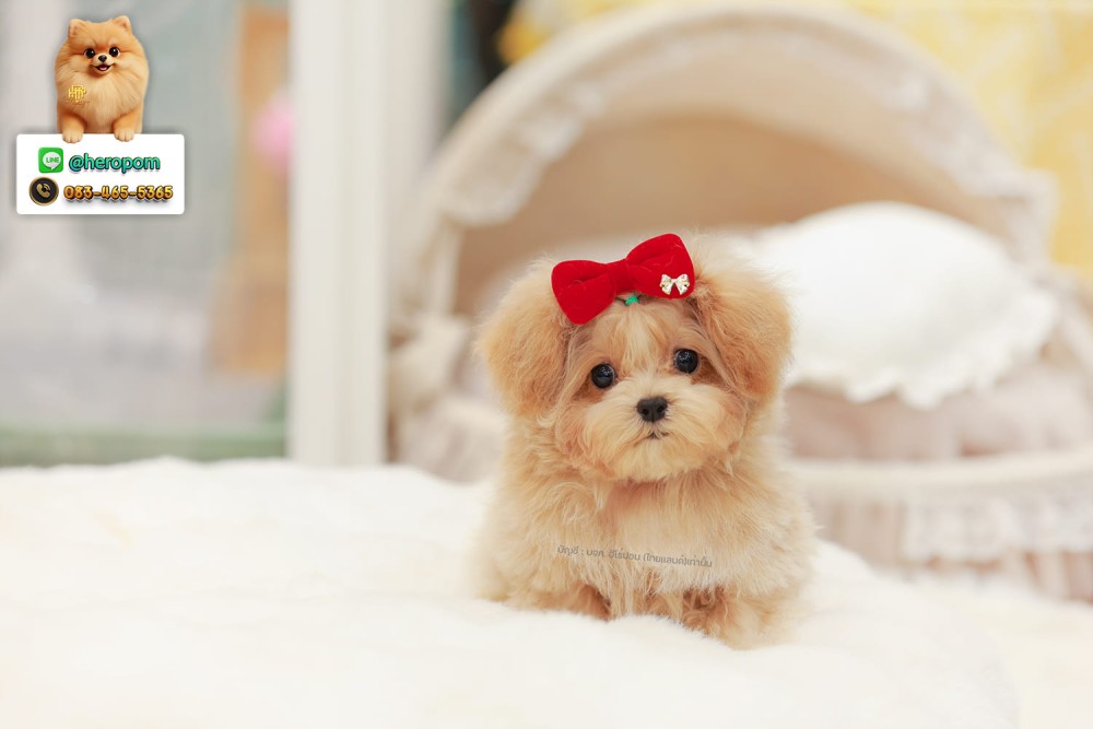 มอบติพู MTPF-56158 เพศหญิง สีแชมเปญ สีสวยน่ารัก คิ้วชัด แก้มชัดมาก ๆ ขนนุ่ม แน่นฟู ตัวจิ๋ว สดใส ร่าเริง น่ารักมาก ๆ เพาะพันธุ์ในไทย มีใบรับรองจากสมาคมพัฒนาพันธุ์สุนัข (ใบเพ็ดดีกรีเต็มใบ) ส่งทั่วประเทศ