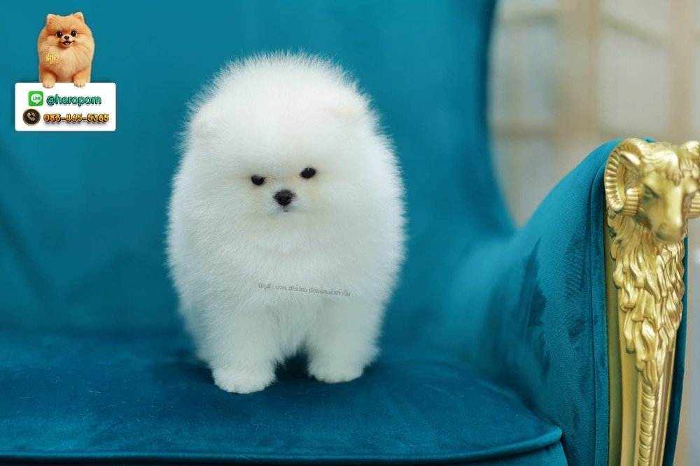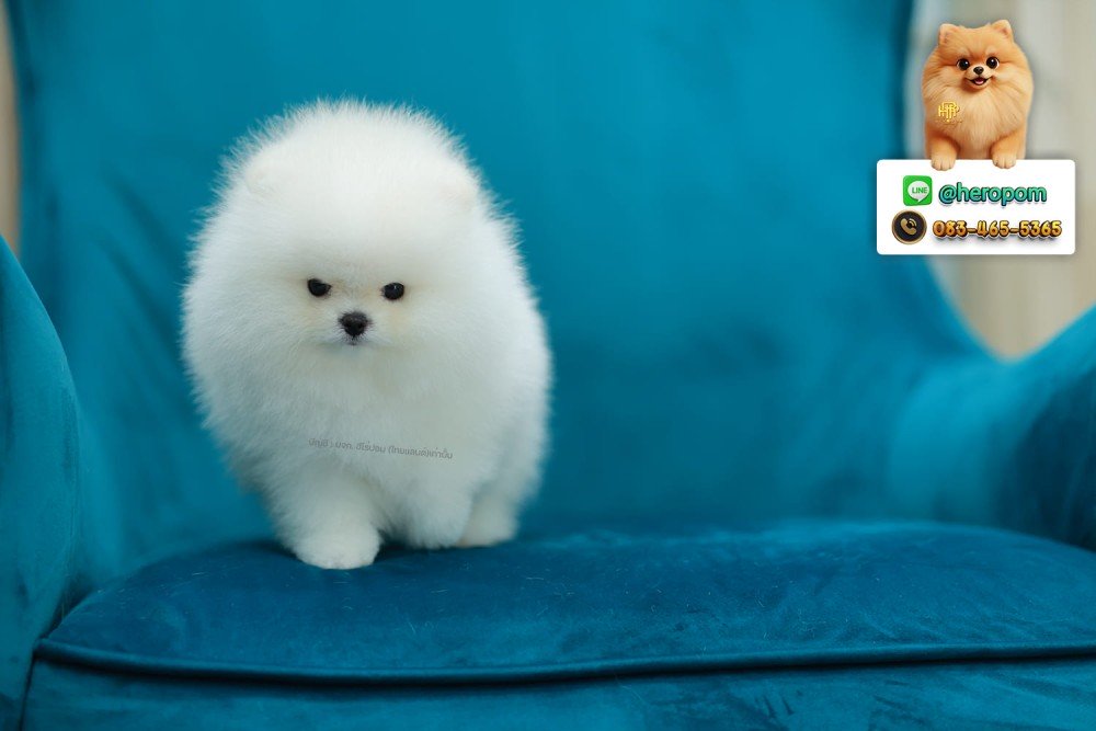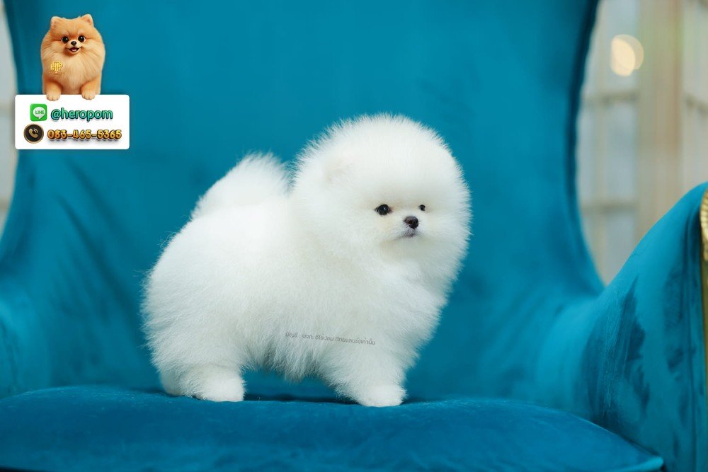 ปอมแท้ ปอมหน้าสั้น HRM-10466 เพศชาย สีขาว หนุ่มฮอต หน้าตาน่ารัก น่าเอ็นดูมาก ๆ แก้มนุ่ม ขาใหญ่ ขนแน่น พาราน่าร๊ากก มีใบรับรองจากสมาคมพัฒนาพันธุ์สุนัข (ใบเพ็ดดีกรีเต็มใบ) ส่งทั่วประเทศ