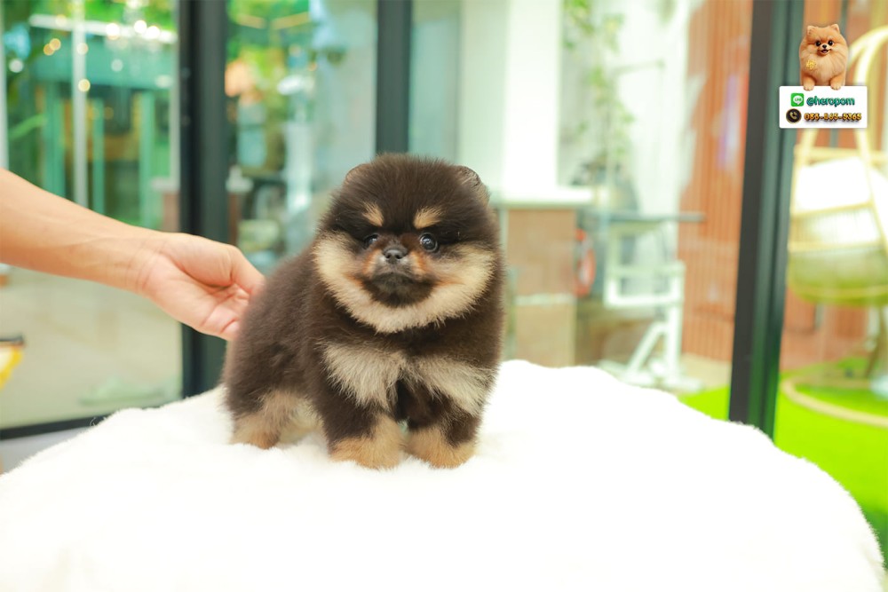 ปอมแท้ ปอมหน้าสั้น HRF-10568 เพศหญิง สีแบล็คแทน หนุ่มฮอต หน้าตาน่ารัก น่าเอ็นดูมาก ๆ แก้มนุ่ม ขาใหญ่ ขนแน่น พาราน่าร๊ากก มีใบรับรองจากสมาคมพัฒนาพันธุ์สุนัข (ใบเพ็ดดีกรีเต็มใบ) ส่งทั่วประเทศ