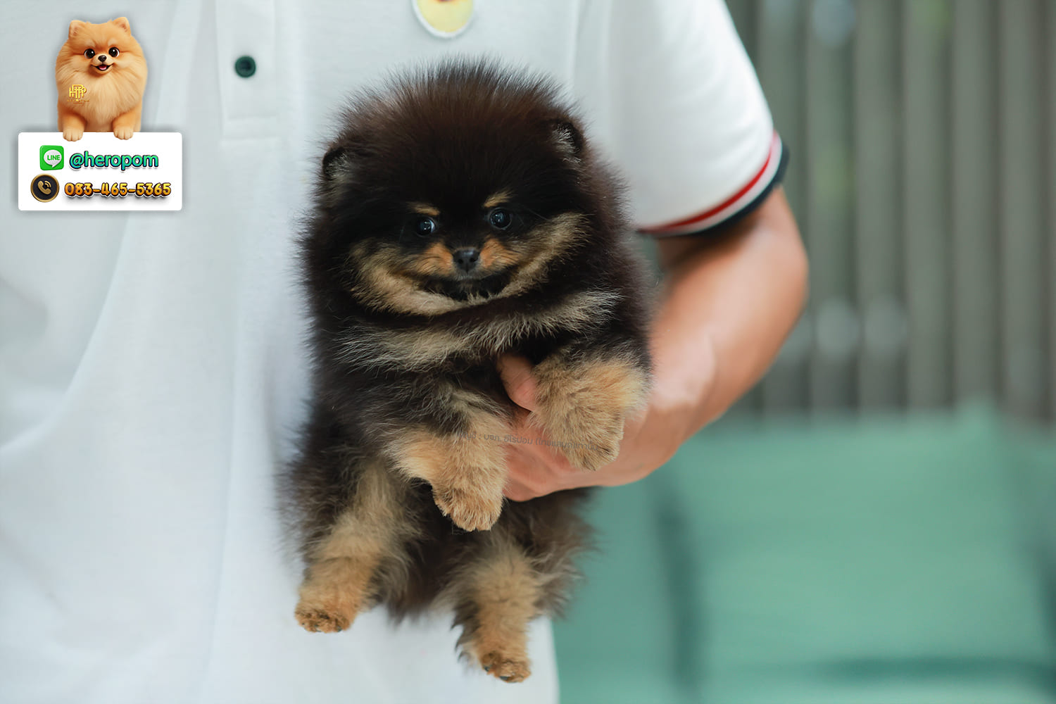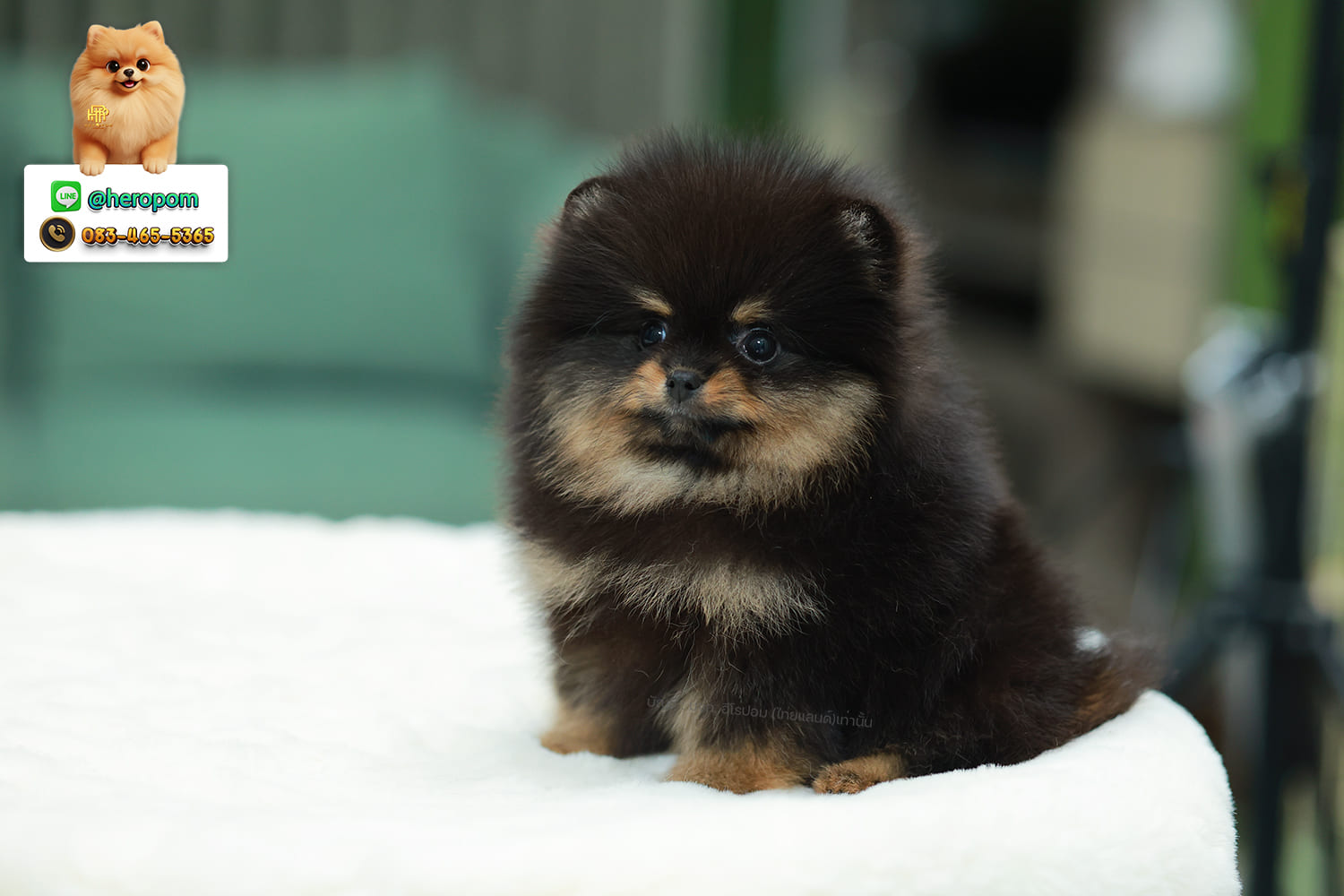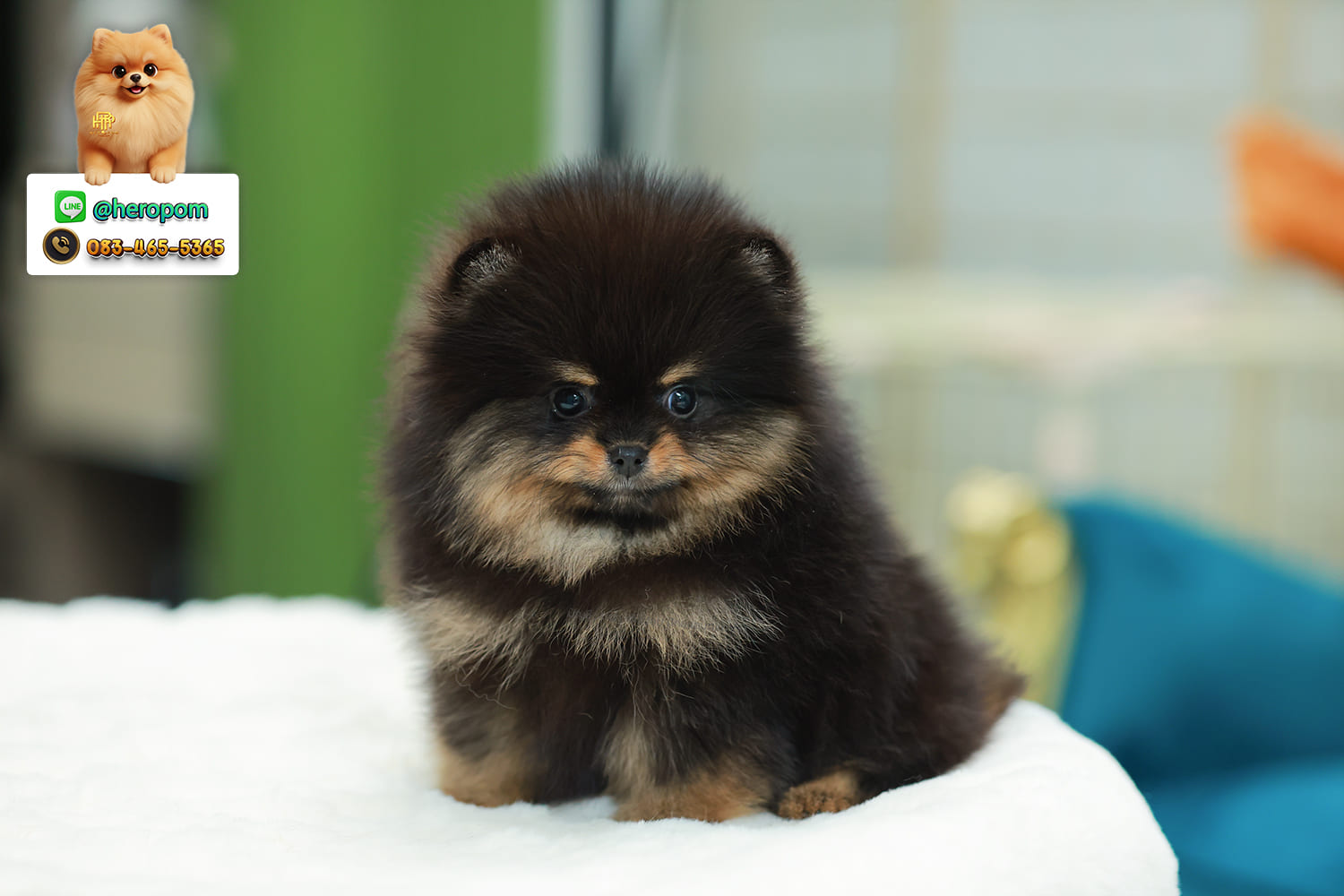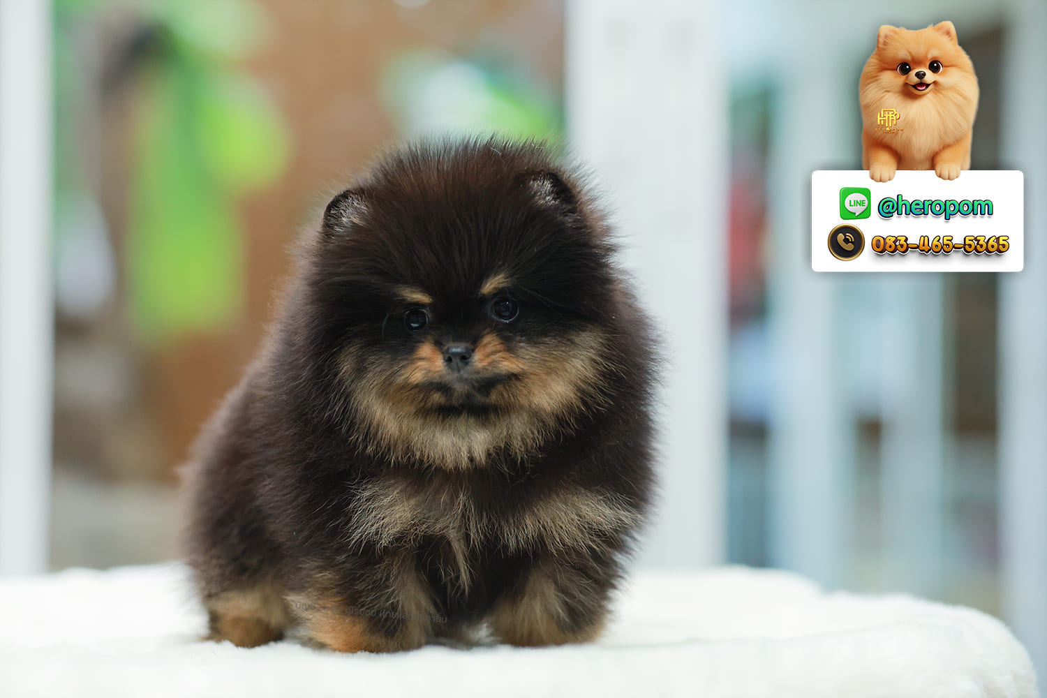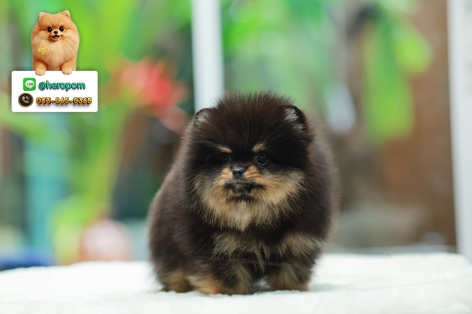 ปอมแท้ ปอมหน้าสั้น HRM-10826 เพศชาย สีแบล็คแทน หนุ่มฮอต หน้าตาน่ารัก น่าเอ็นดูมาก ๆ แก้มนุ่ม ขาใหญ่ ขนแน่น พาราน่าร๊ากก มีใบรับรองจากสมาคมพัฒนาพันธุ์สุนัข (ใบเพ็ดดีกรีเต็มใบ) ส่งทั่วประเทศ