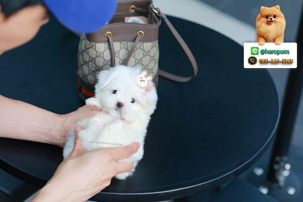 มอลทีส MTM-10564 เพศชาย สีขาว ตัวเล็กตัวน้อยมาก ๆ ขาสั้น ขนแน่นฟู หน้าตาทะเล้น น่ารักมาก ๆ ยิ้มเก่ง ขยันแจกความน่ารักสุด ๆ สายเลือดนำเข้า มีใบรับรองจากสมาคมพัฒนาพันธุ์สุนัข (ใบเพ็ดดีกรีเต็มใบ) ส่งทั่วประเทศ