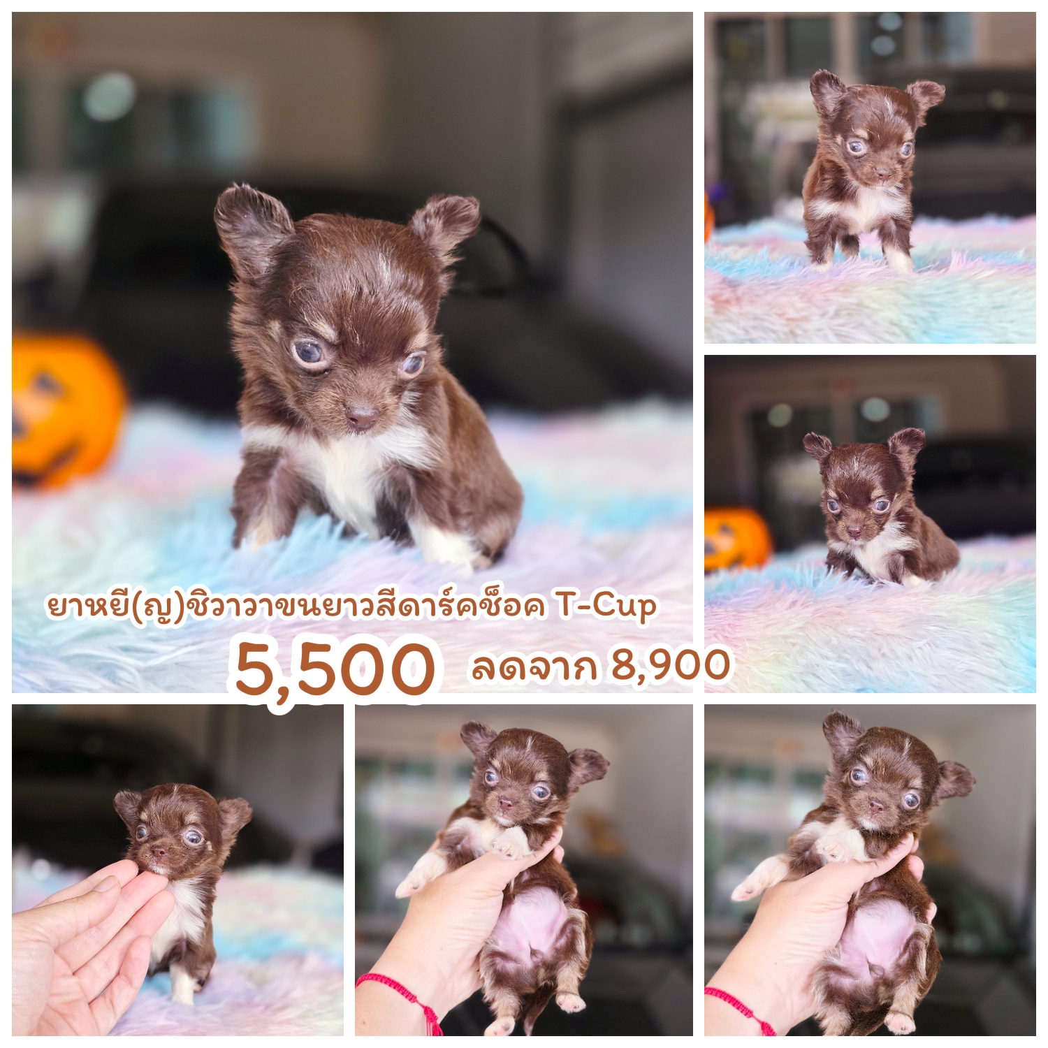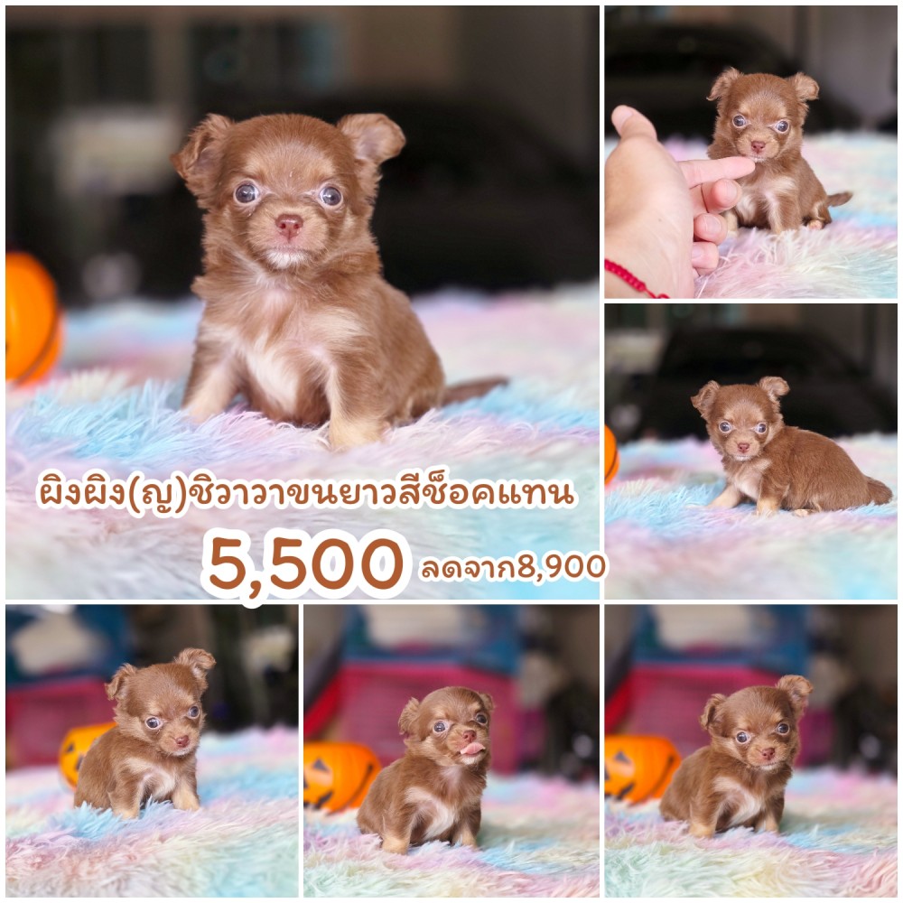 ชิวาวาสีช็อคพันธุ์แท้ขนยาว อายุเกือบ2เดือน ไซส์เล็กจิ๋ว หย่านมแล้ว กินอาหารเม็ดเกรดพรีเมียม สุขถาพแข็งแรง ปลอดโรค วัคซีนให้ฟรี1เข็ม เป็นวัคซีนรวม5โรค พร้อมใบวัคซีน
