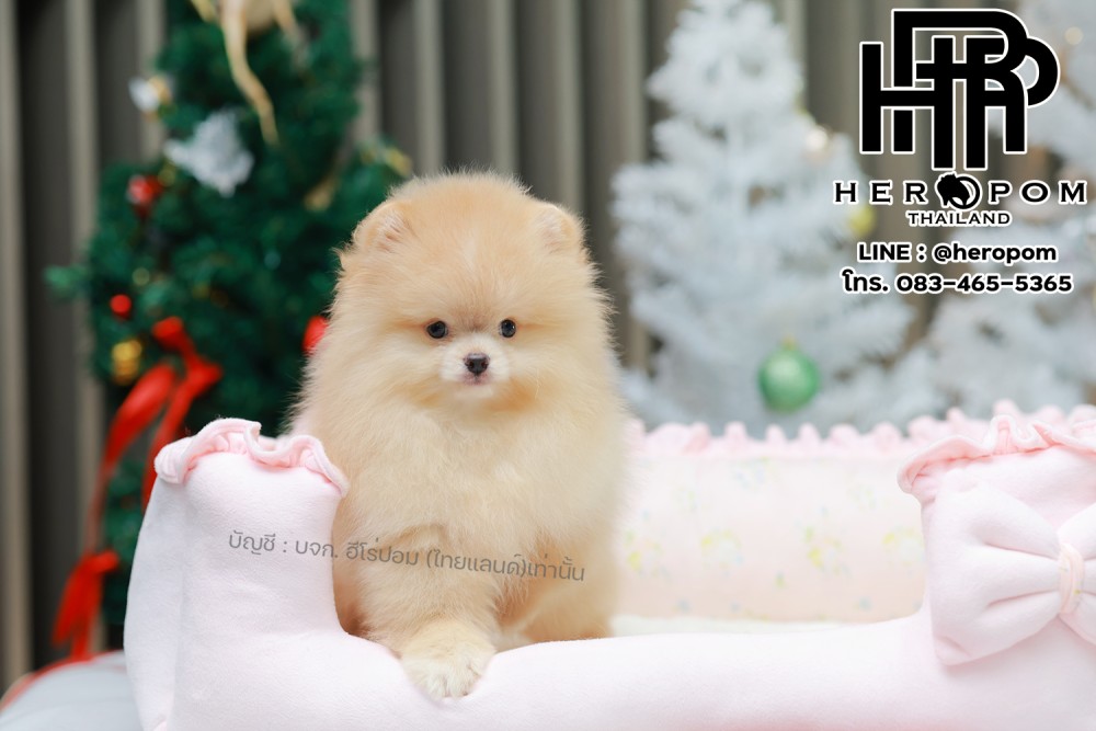 ปอมแท้ ปอมหน้าหมี HRF-01916 เพศหญิง สีส้มครีม ตัวจิ๋วตัวเล็ก แก้มอ้วน น่าฟัดมาก ๆ ตอนวิ่งดุ๊กดิ๊ก ๆ น่าเอ็นดูสุด ๆ มีใบรับรองจากสมาคมพัฒนาพันธุ์สุนัข (ใบเพ็ดดีกรีเต็มใบ) ส่งทั่วประเทศ