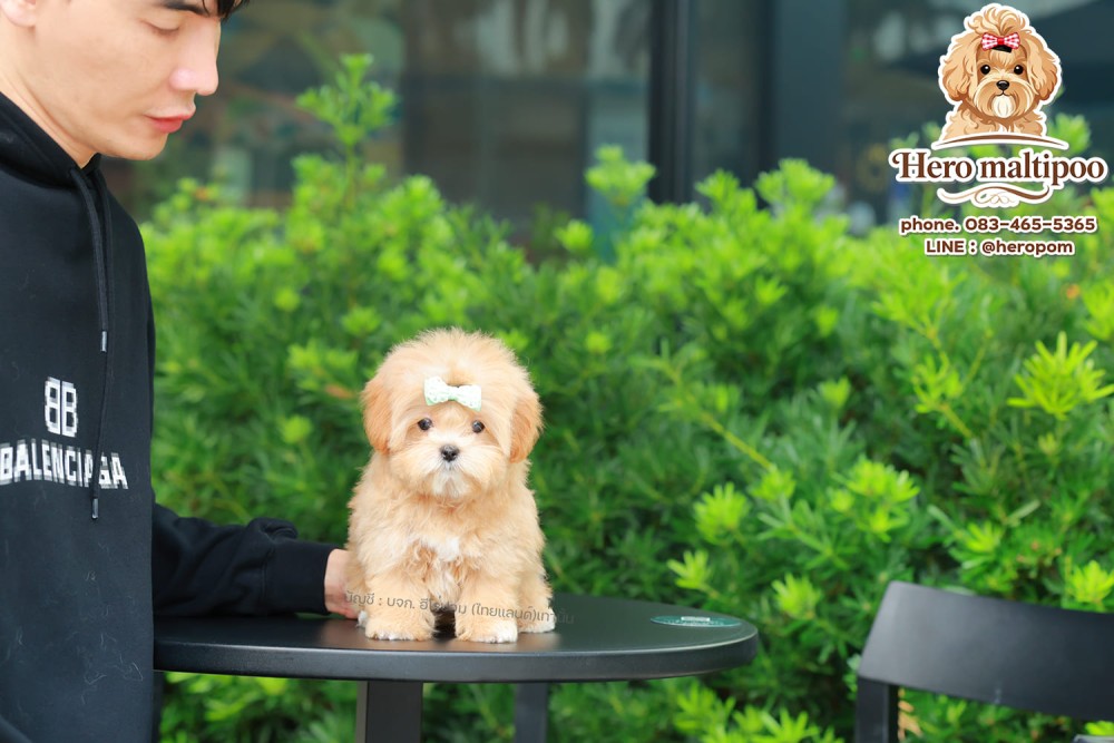 มอลติพู MTPM-61208 เพศชาย สี Champagne อายุ 2 ปี น่ารัก หัวกลม มีถุงเท้าสีขาว สีน่ารักมาก ๆ จมูกรูปหัวใจ ตัวจิ๋ว ขนฟูแน่น นุ่มนิ่มมาก ๆ มีใบรับรองจากสมาคมพัฒนาพันธุ์สุนัข (ใบเพ็ดดีกรีเต็มใบ) ส่งทั่วประเทศ