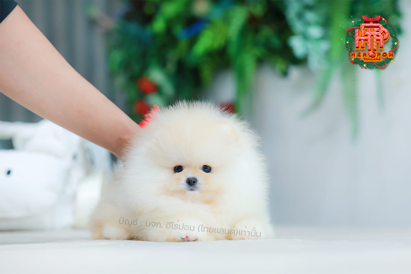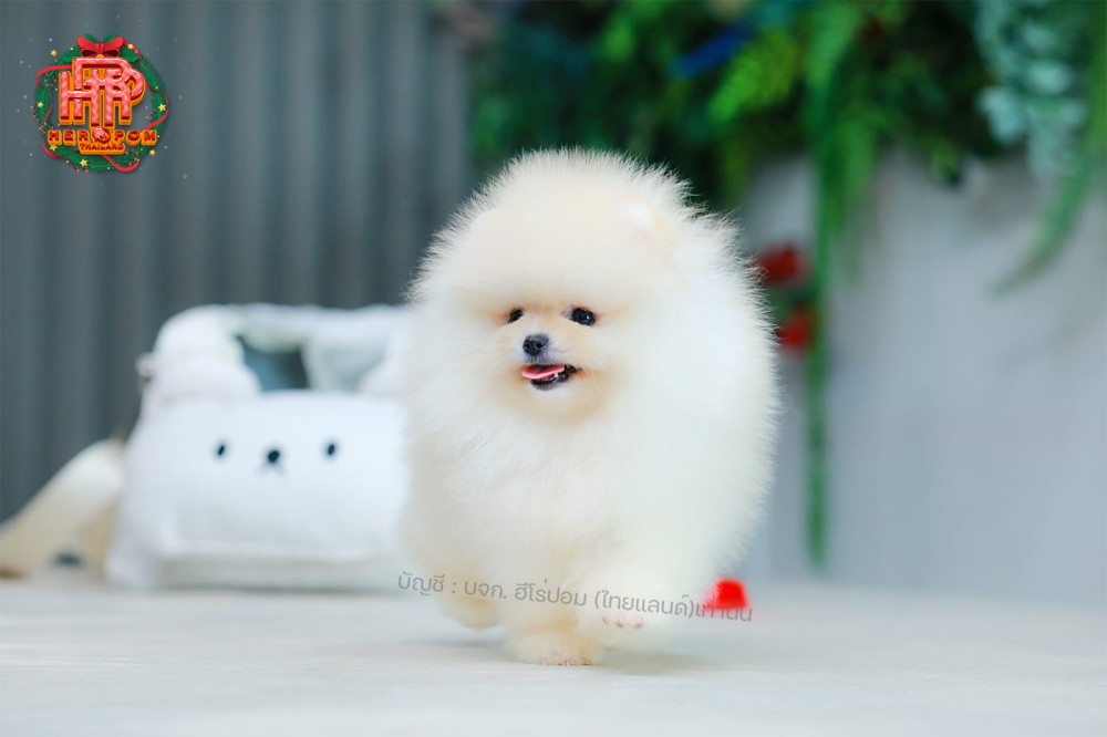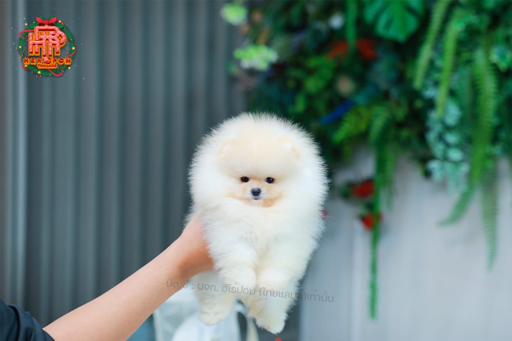 ปอมแท้ ปอมหน้าหมี HRM-10512 เพศหญิง สีขาวครีม อายุ 2 เดือน ขนแน่น ขาใหญ่ กินเก่ง หน้าตาน่ารัก สดใสร่าเริง ขี้อ้อนสุด ๆ มีใบรับรองจากสมาคมพัฒนาพันธุ์สุนัข (ใบเพ็ดดีกรีเต็มใบ) ส่งทั่วประเทศ