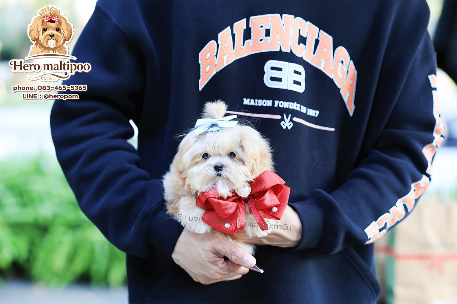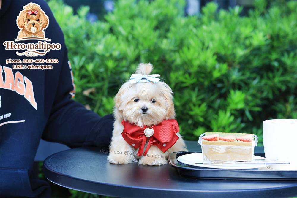 มอลติพู MTPM-56206 เพศชาย สี Champagne อายุ 2 ปี น่ารัก หัวกลม มีถุงเท้าสีขาว สีน่ารักมาก ๆ จมูกรูปหัวใจ ตัวจิ๋ว ขนฟูแน่น นุ่มนิ่มมาก ๆ มีใบรับรองจากสมาคมพัฒนาพันธุ์สุนัข (ใบเพ็ดดีกรีเต็มใบ) ส่งทั่วประเทศ