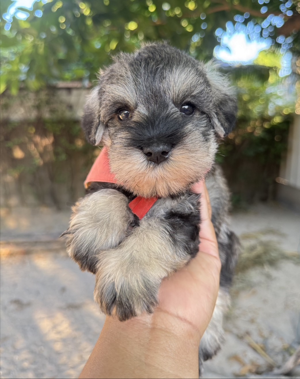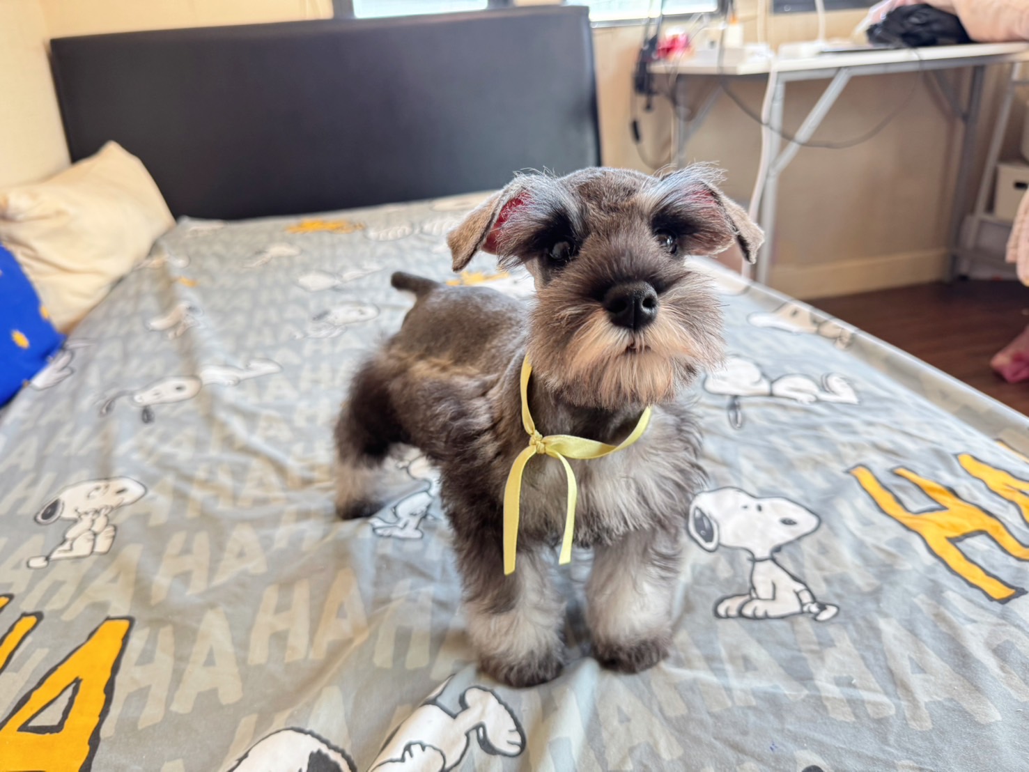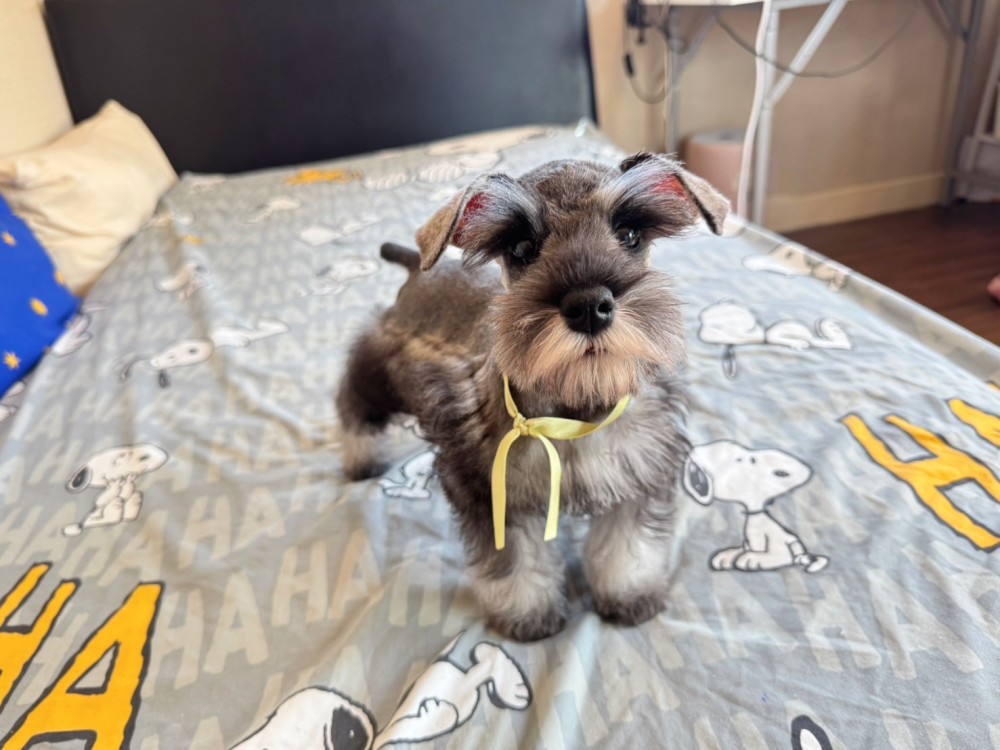 ชเนาเซอร์สีเทาเพศเมีย ขี้อ้อน ร่าเริง โทร0619366111