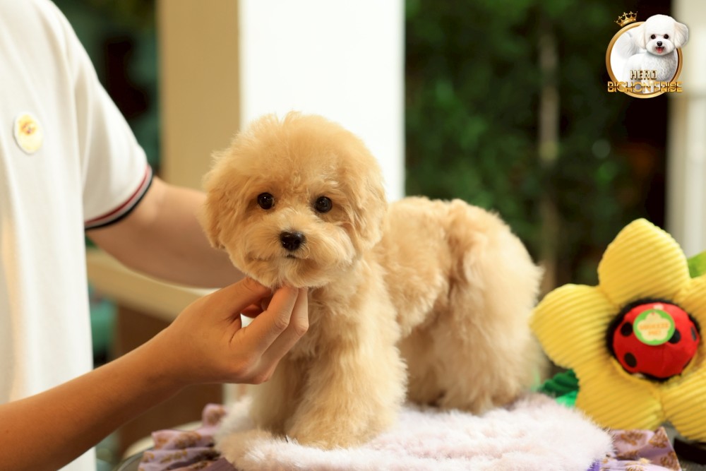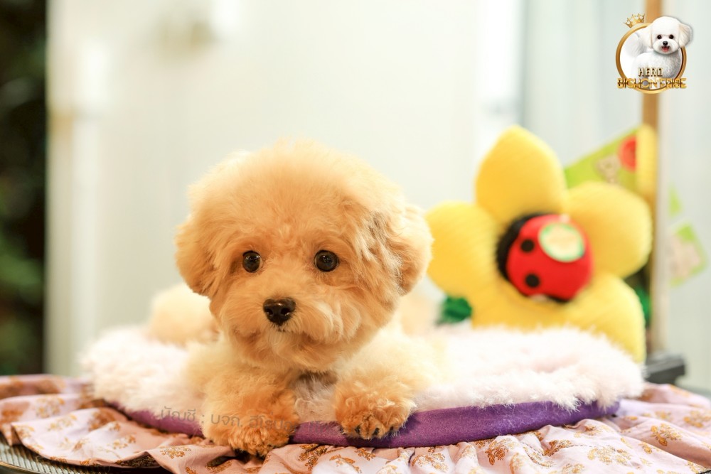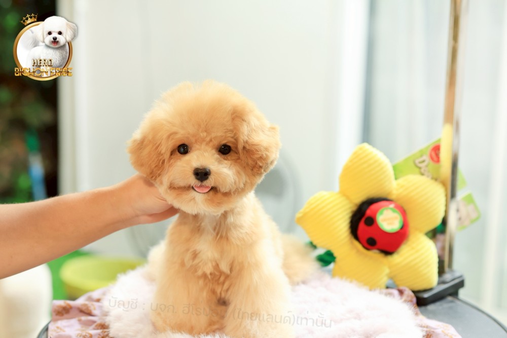 bichonพู BCM-10751 เพศชาย สีแชมเปญ หน้าตาน่ารัก ขาสั้น ขนแน่นฟู ขี้เล่นมาก ตัวเล็ก ขนนุ่ม สายเลือดคุณพ่อคุณแม่นำเข้าจากต่างประเทศ ส่งทั่วประเทศ