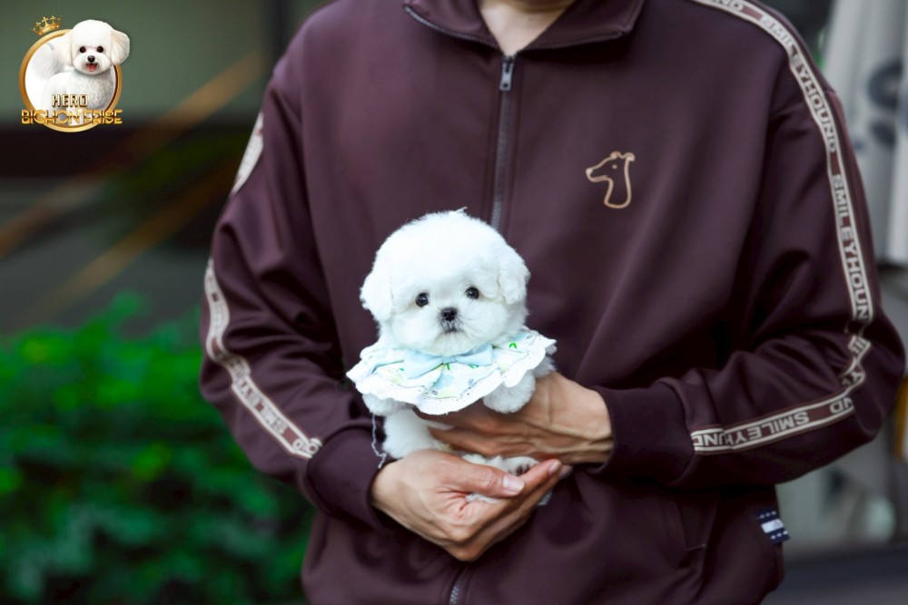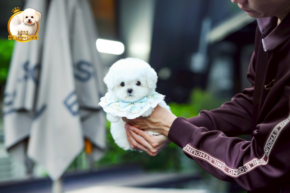 มินิบิชอง BCM-00686 เพศชาย สีขาว หน้าตาน่ารัก ขาสั้น ขนแน่นฟู ขี้เล่นมาก ตัวเล็ก ขนนุ่ม สายเลือดคุณพ่อคุณแม่นำเข้าจากต่างประเทศ มีใบรับรองจากสมาคมพัฒนาพันธุ์สุนัข (ใบเพ็ดดีกรีเต็มใบ) ส่งทั่วประเทศ