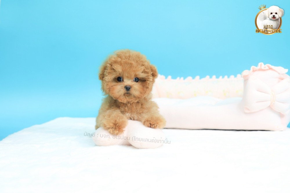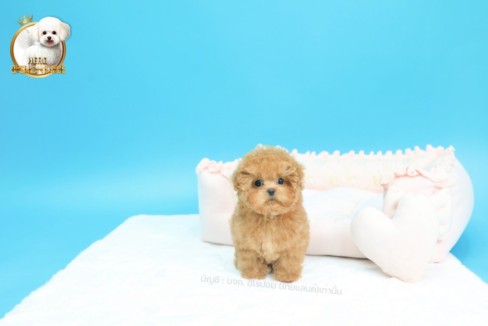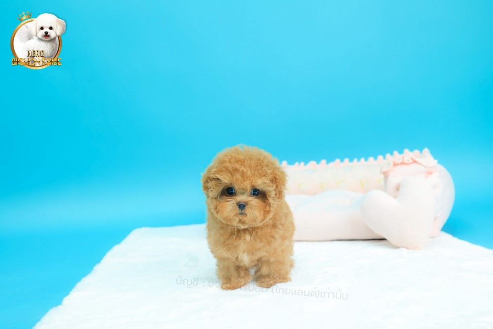bichonพู BCM-62782 เพศชาย สีแชมเปญ หน้าตาน่ารัก ขาสั้น ขนแน่นฟู ขี้เล่นมาก ตัวเล็ก ขนนุ่ม สายเลือดคุณพ่อคุณแม่นำเข้าจากต่างประเทศ ส่งทั่วประเทศ
