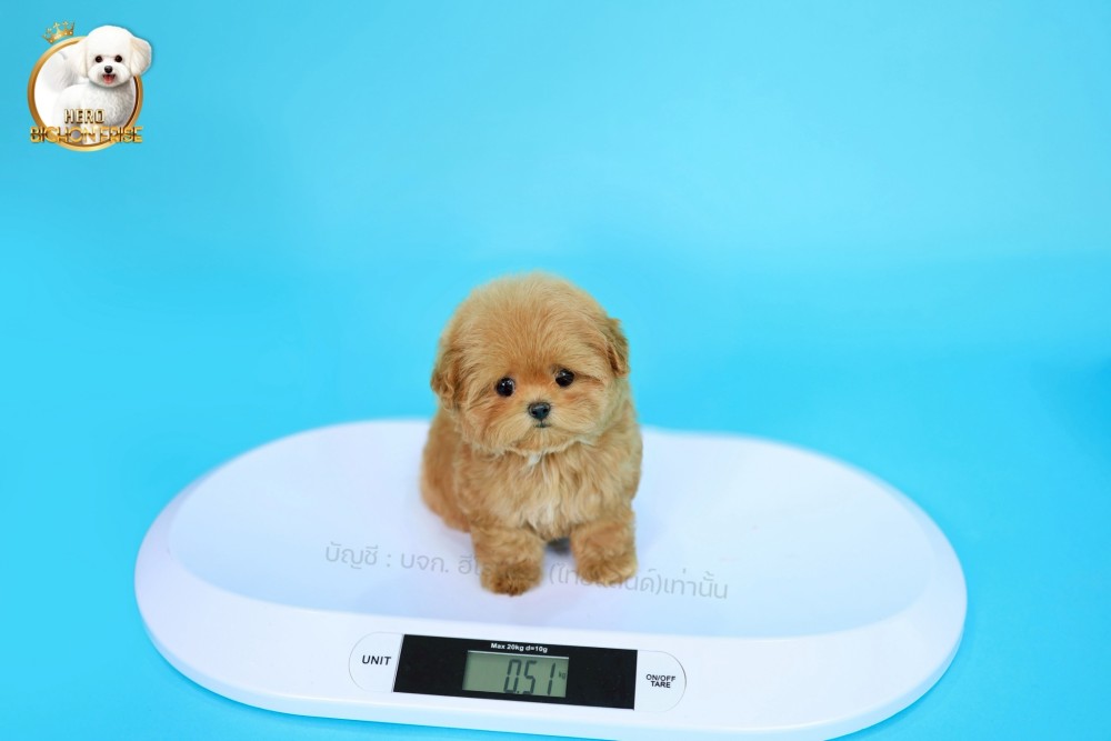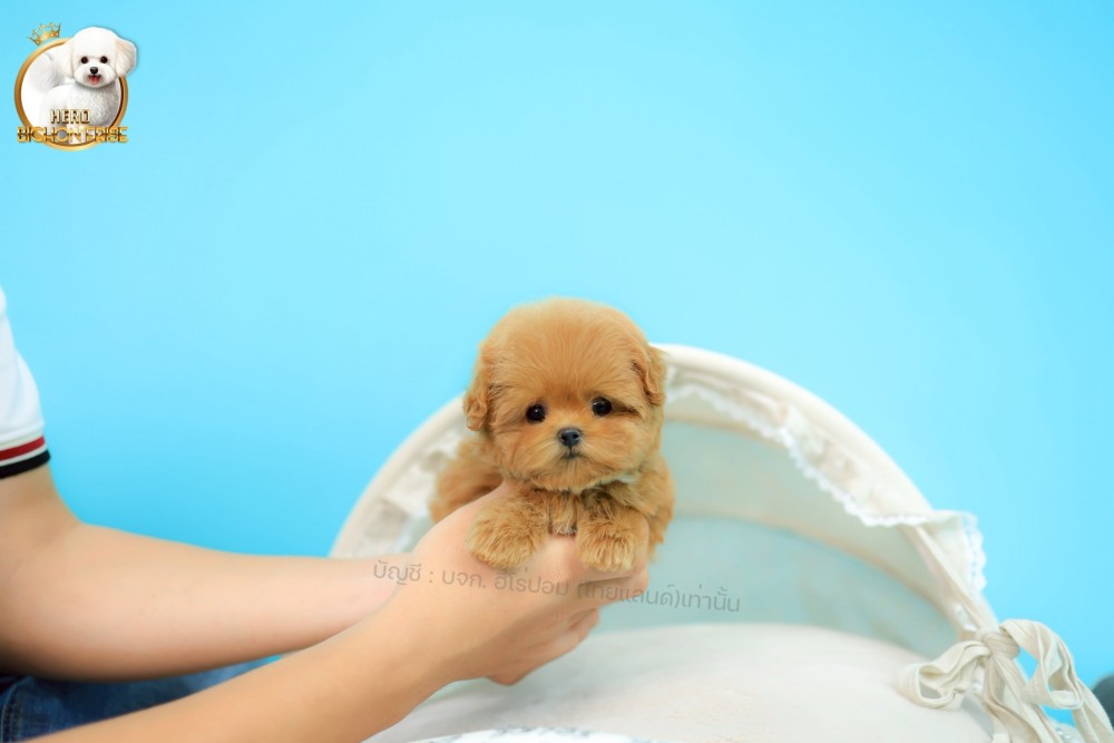 bichonพู BCF-62875 เพศหญิง สีแชมเปญ หน้าตาน่ารัก ขาสั้น ขนแน่นฟู ขี้เล่นมาก ตัวเล็ก ขนนุ่ม สายเลือดคุณพ่อคุณแม่นำเข้าจากต่างประเทศ ส่งทั่วประเทศ
