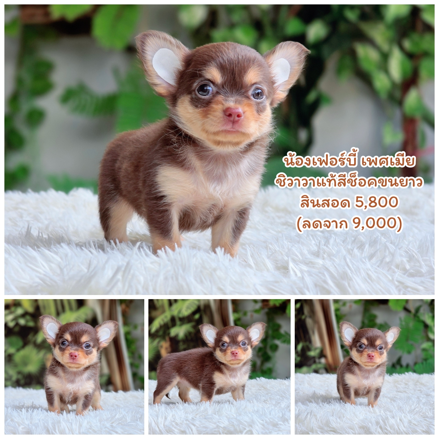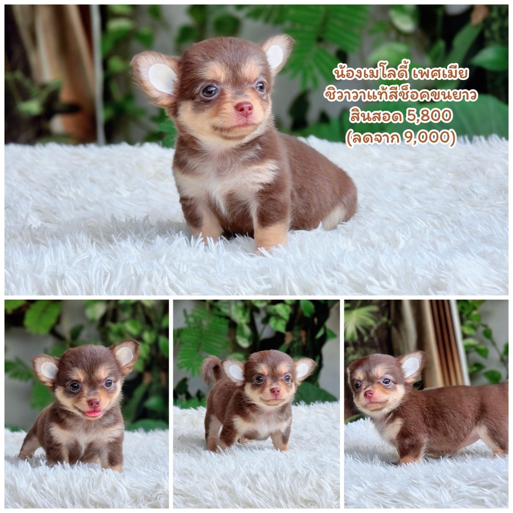 ลูกสุนัขพันธุ์ชิวาวาแท้ฟอร์มสวย ไซส์เล็กสีช็อค อายุ2เดือน หย่านมแล้ว กินอาหารเม็ดเกรดพรีเมียม สุขถาพแข็งแรง ปลอดโรค