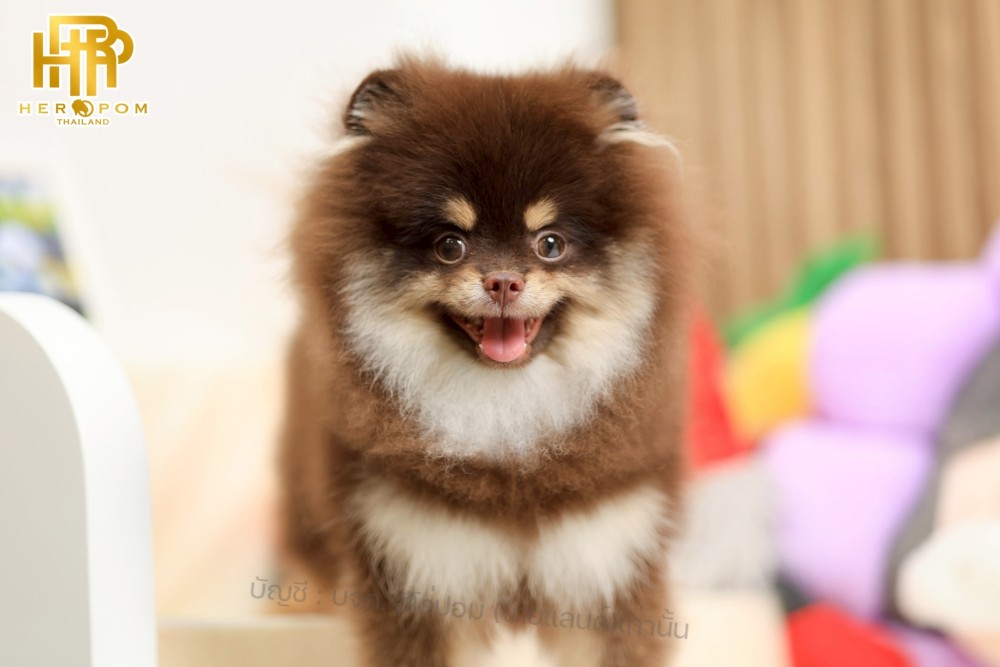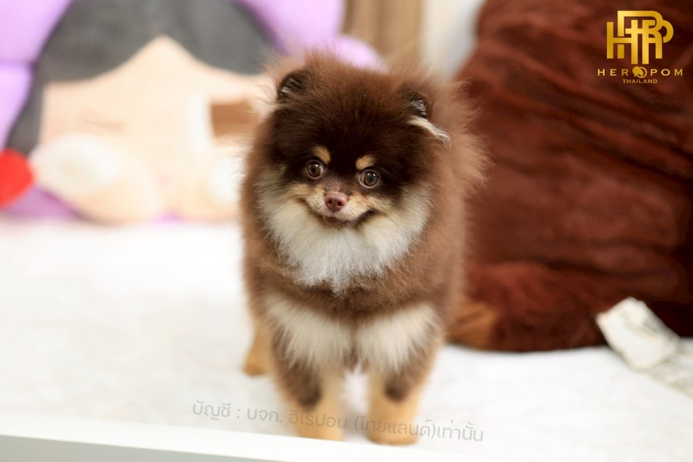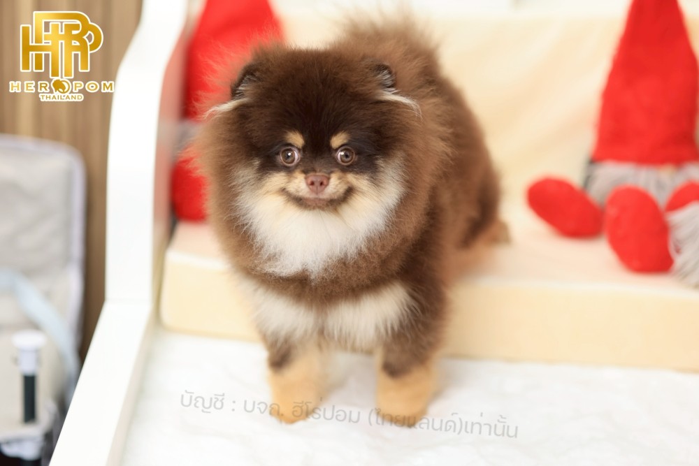 ปอมแท้ ปอมหน้าสั้น HRM-10478 เพศชาย สีช้อคแทน อายุ 3 เดือน น่ารักมาก ๆ ถ่ายรูปแล้วขึ้นกล้องสุด ๆ ท่านั่ง ท่าเดิน น่ารักสุด ๆ พร้อมย้ายบ้านนะครับ มีใบรับรองจากสมาคมพัฒนาพันธุ์สุนัข (ใบเพ็ดดีกรีเต็มใบ) ส่งทั่วประเทศ