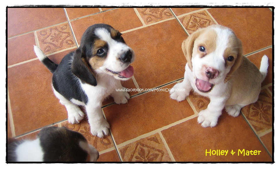 บีเกิ้ล วัย 45 วัน เพศผู้สองสี 1 ตัว เพศเมียสามสี 1 ตัว โครงสร้างสวย ลักษณะดี มาร์คกิ้งครบ