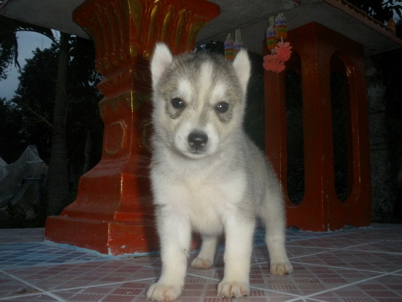 ลูกสุนัขไซเรียนฮัสกี้ ตัวในรูป ผู้ 1 เมีย 4 ลูกสุนัขเกิดเมื่อวันที่ 28 กันยายน 2554 ผู้ 1 ตัวสีขาวเทาเข้ม ตาสีน้ำตาลคู่ ขายราคา 5,500 บาท เมีย 4 ตัว มีสีเทาขาว 1 ตัวตาสีน้ำตาลคู่ ขายราคา 5,500 บาท สีดำขาว 1 ตัวตาสีดำคู่ ขายราคา 6,500 บาท และสีเทาขาวตาสีฟ้าคู่ 2 ตัว ขายราคาตัวละ 6,500 บาท ลูกสุนัขอ้วนจ้ำม่ำครับ กินอาหารเองได้แล้วครับ ซนมากๆ ครับ ถ่ายพยาธิให้แล้วครับ ในรูปน้องหมาดูมอมแมมครับ เพราะไม่ได้อาบน้ำให้ครับ (เปื้อนอาหารครับ) พ่อพันธุ์สีเทาขาว ส่วนตัวแม่พันธุ์สีดำขาวครับ น้องหมาไม่มีใบเพดฯ แต่พันธุ์แท้ 100% ครับ สนใจโทรสอบถามรายละเอียดได้ครับที่ 089-9535127..สมพันธ์ หรือจะเข้ามาแวะชมน้องหมาดูก่อนที่บ้านได้ครับ อยู่ที อ.สันป่าตอง จ.เชียงใหม่ บริการจัดส่งทางเครื่องบินครับ สายการบินไทย (คาร์โก้) ค่าขนส่งผู้ซื้อออกเองนะครับ รูปถ่ายบางรูปดูดี ดูสวย บางรูปดูไม่ค่อยสวยเพราะว่าน้องมามันซนจับถ่ายรูปยากมากครับ และถ่ายคนเดียวด้วยครับ