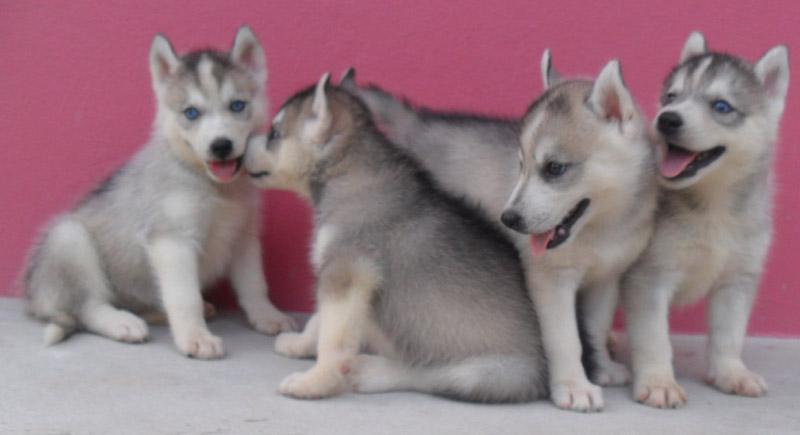 ลูกสุนัขไซเรียนฮัสกี้ 4 ตัว ผู้ 1 เมีย 3 ตัวในรูป ราคา 5,500 บาท เชียงใหม่