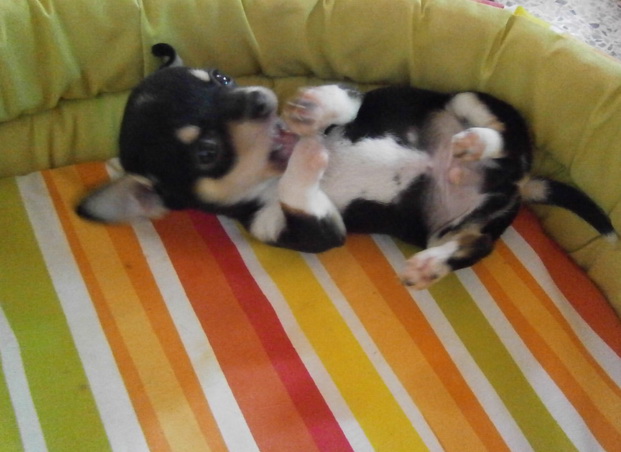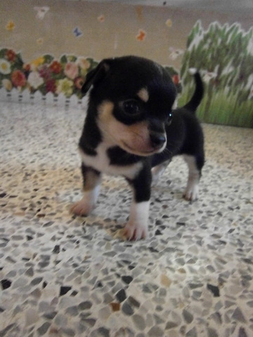 ขายลูกชิวาวา ขนสั้น พันธุ์แท้ สีแบล็คแทน มีถุงเท้า ปลายหางดอก รูปทรงสวย